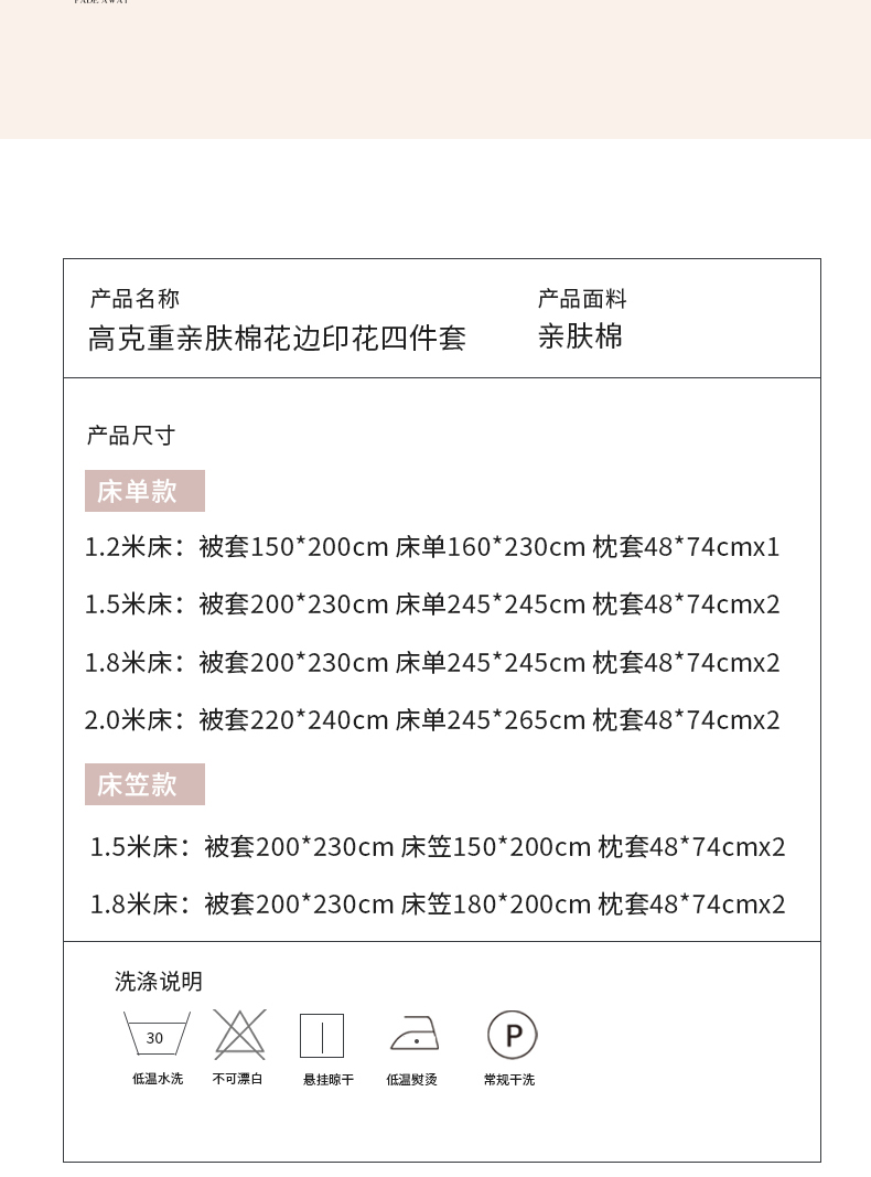 1.8m床笠款四件套 | ¥85.00 |