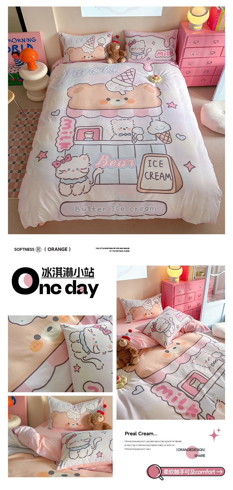 商品名称:美乐迪家纺 2025新款大版全棉四件套 冰淇淋小站