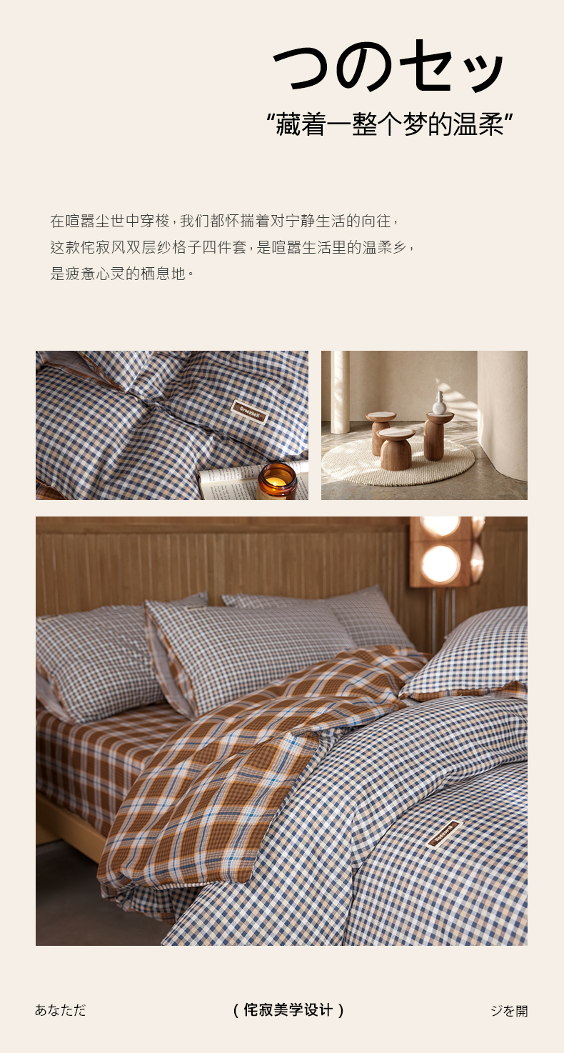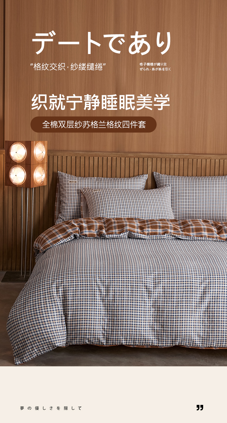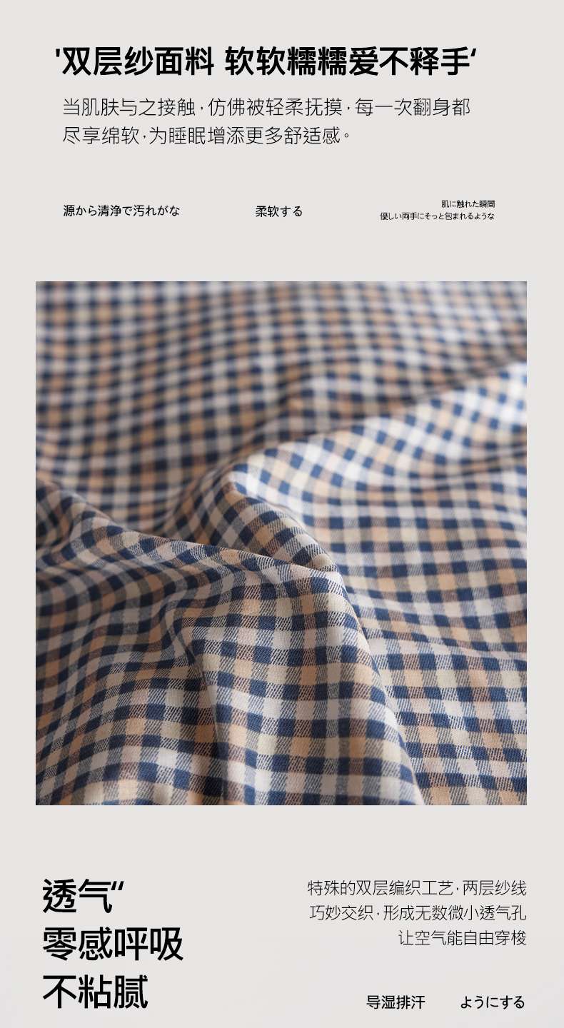 商品名称:安莱生活 2025 全棉双层纱苏格兰格纹系列四件套 牧人格