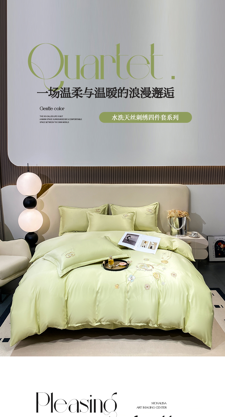 商品名称:慧菲 2025新款轻奢水洗天丝四件套-伊恋 伊恋-芥青