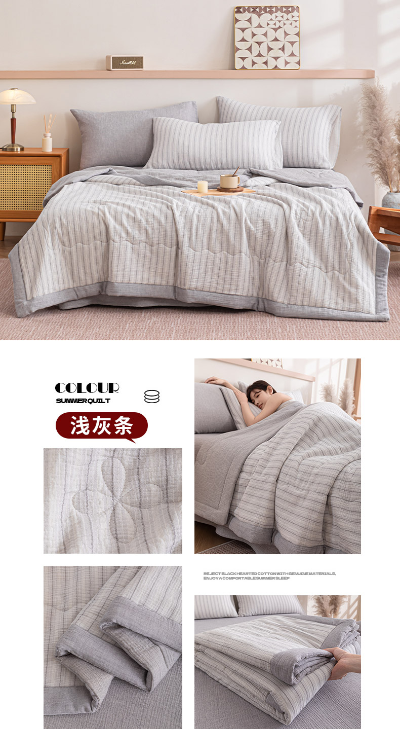 商品名称:吾诺 2025 全棉色织泡泡棉双层纱夏被大豆夏被全棉夏被四件套被子被芯 黄粉条