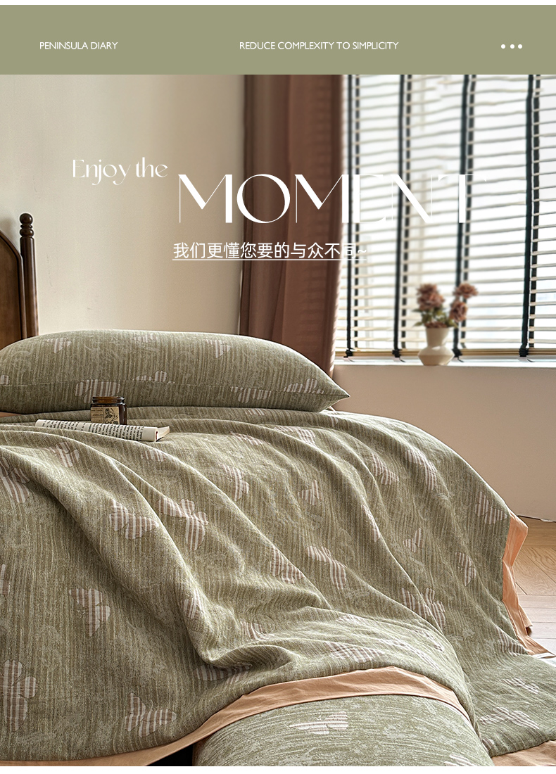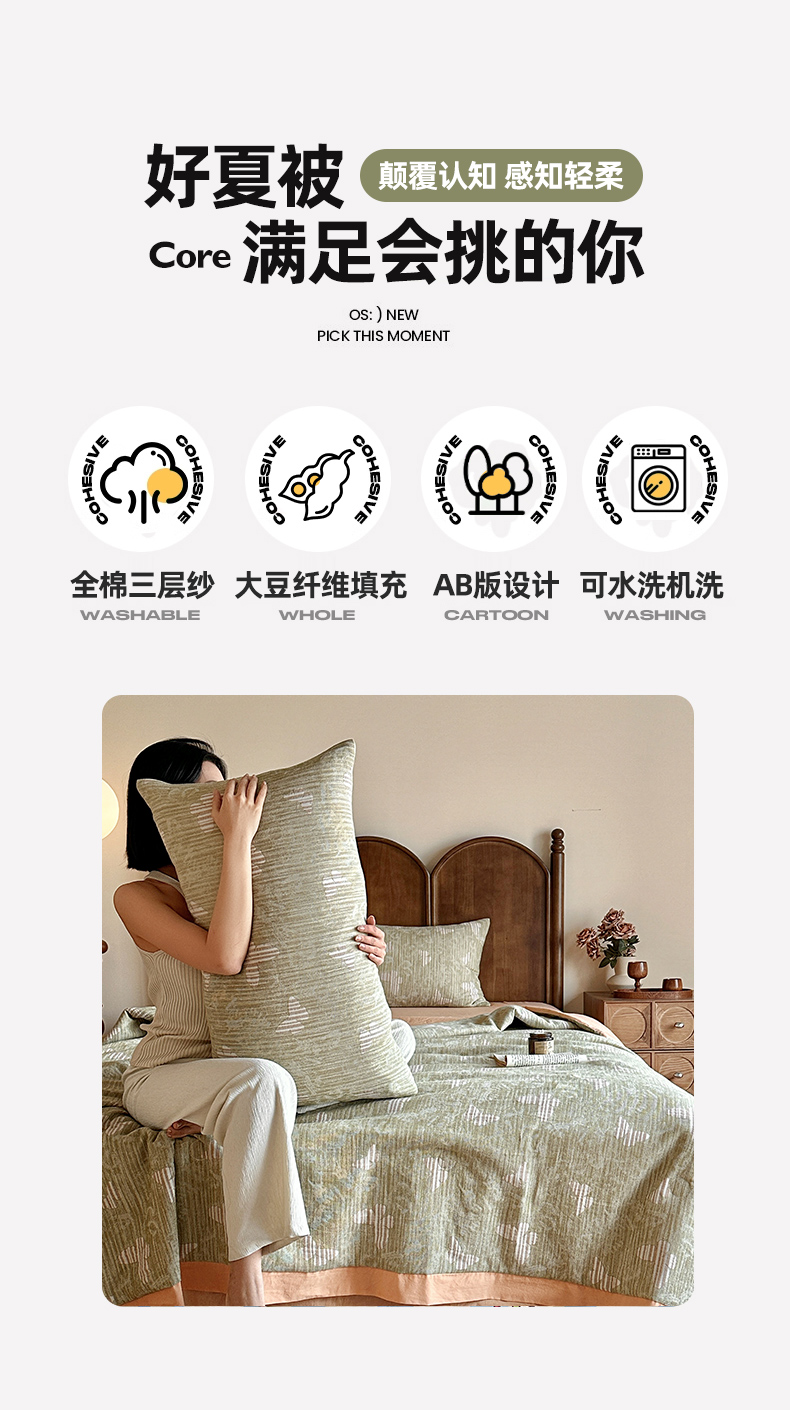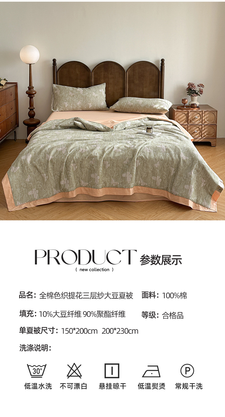 商品名称:吾诺 2025 全棉色织提花三层纱大豆夏被全棉夏被子被芯空调被夏凉被 蝶舞-绿