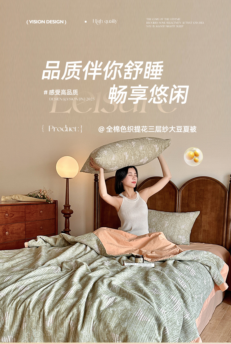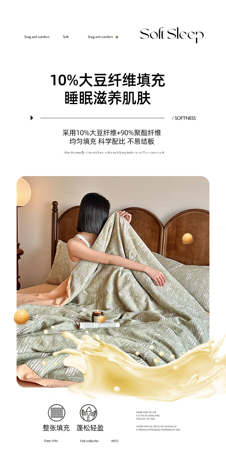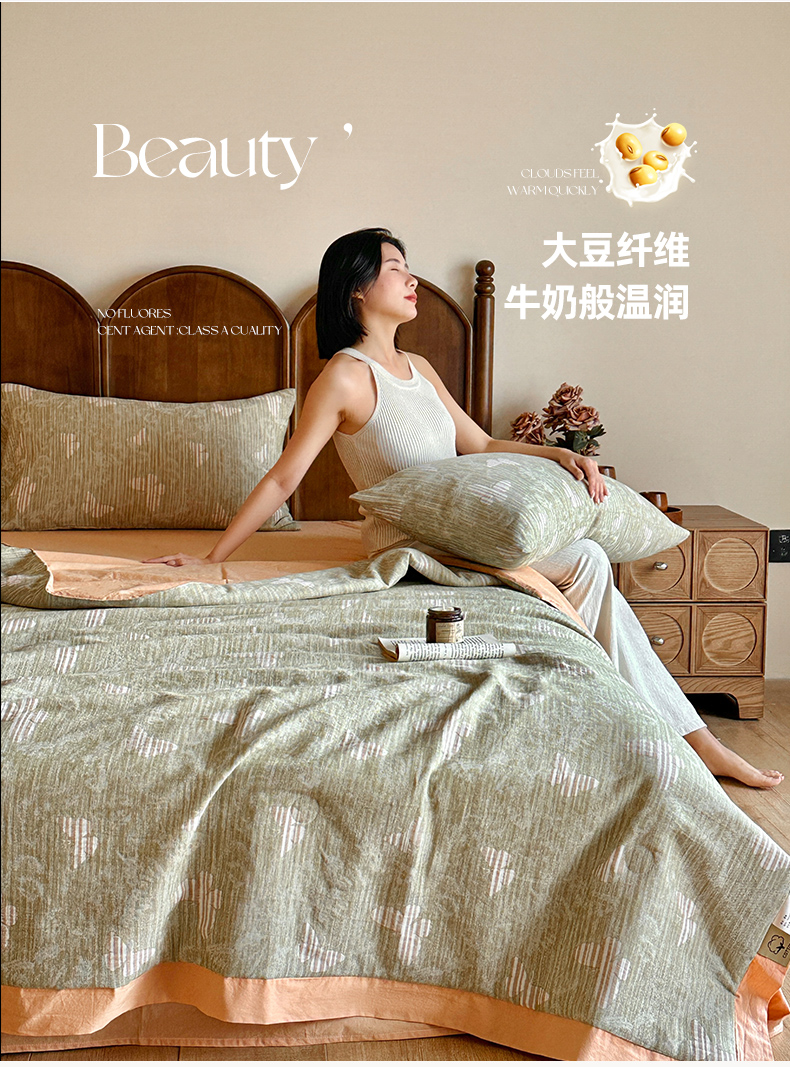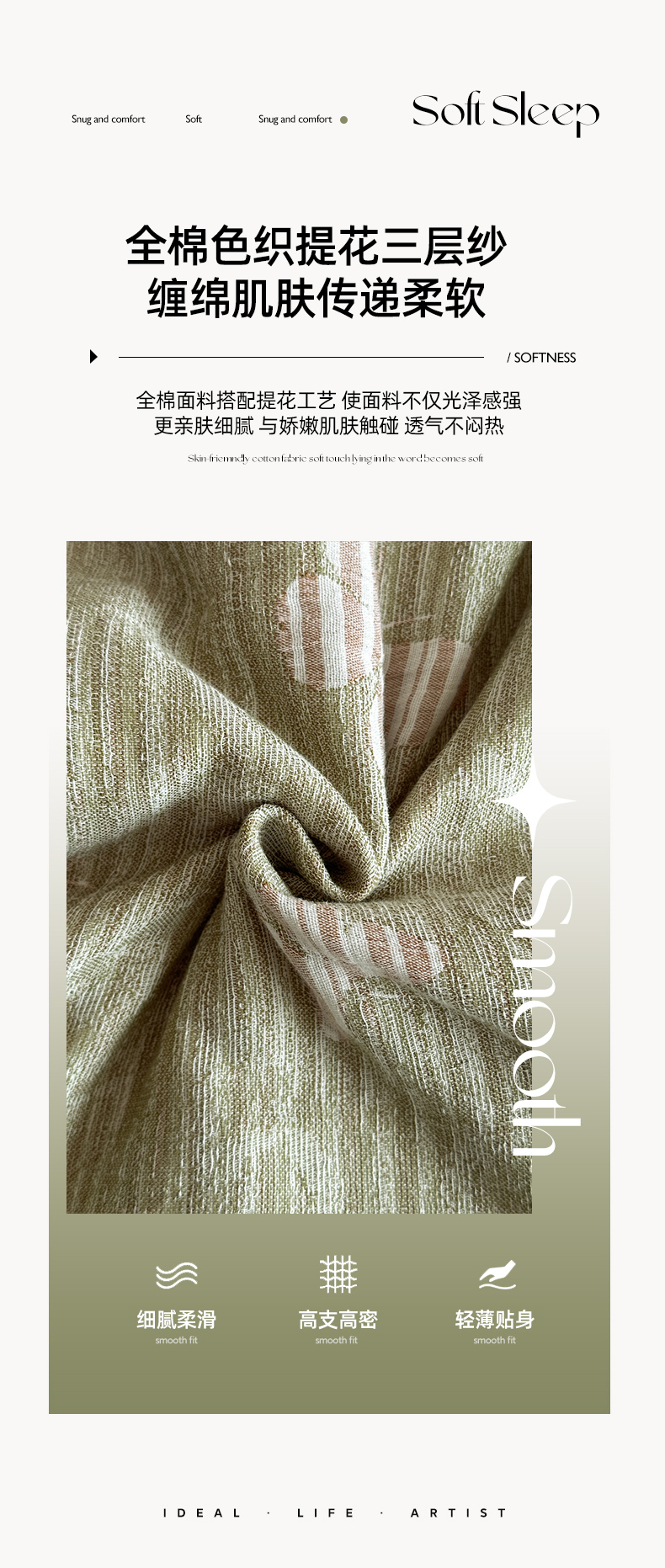 商品名称:吾诺 2025 全棉色织提花三层纱大豆夏被全棉夏被子被芯空调被夏凉被 蝶舞-绿