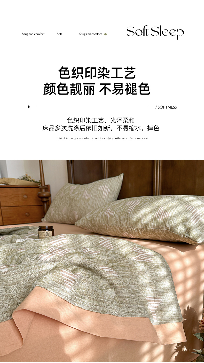 (总)吾诺 水洗原麻拼牛奶绒四件套 纽扣款四件套-原麻系列,晓梦,叠影,羽叶,叶藤,绍华,芳菲,花梦,暗香