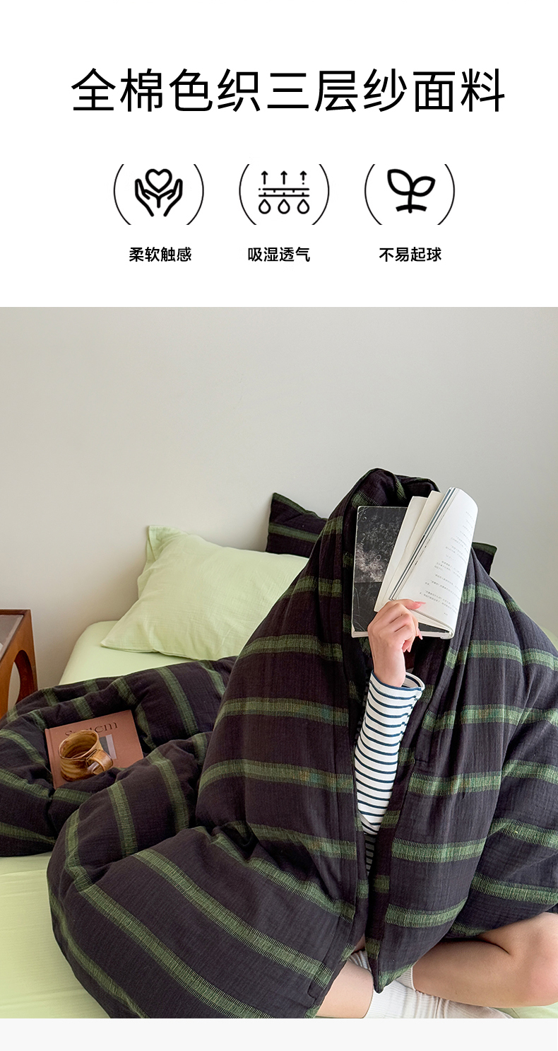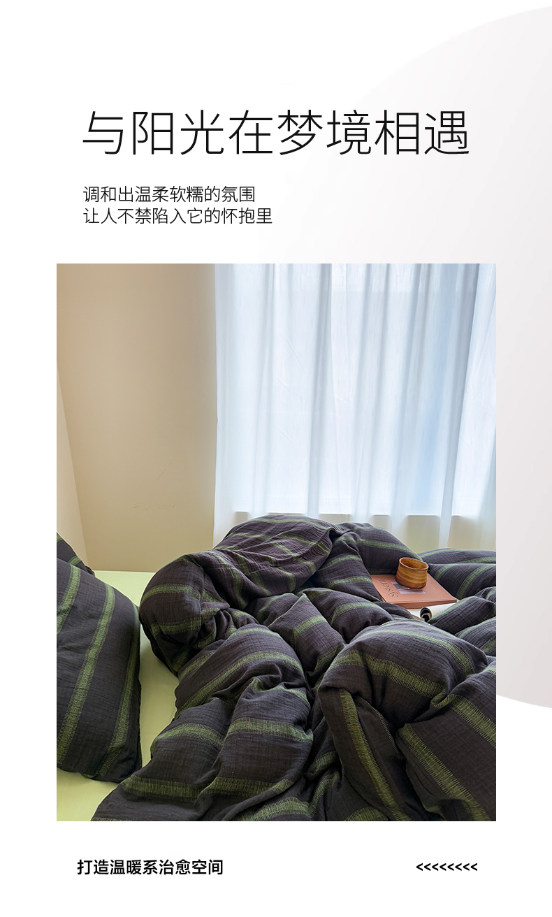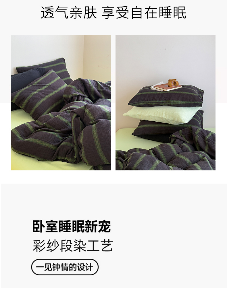 (总)山舍家居 2025新款全棉色织三层纱彩纱段染四件套-一指流光-风格二
