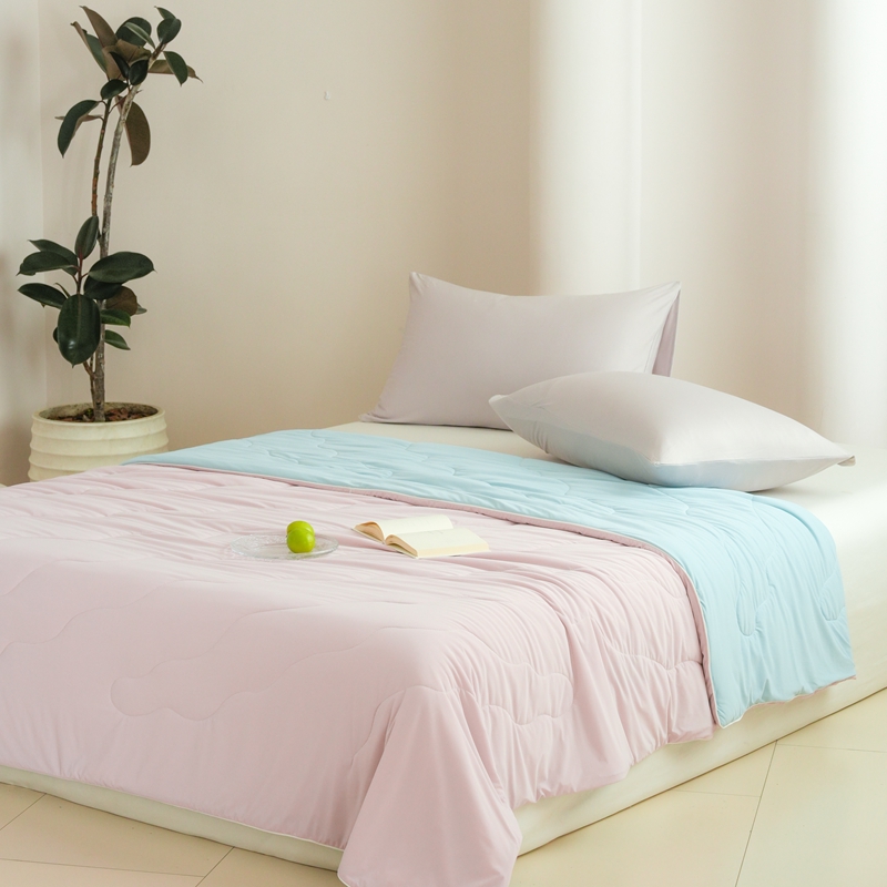 (总)丽卡家纺2025新款冰丽丝锦氨凉感夏被子被芯,淡雅紫+天空蓝,青草绿+浅银灰,珊瑚橘+浅银灰