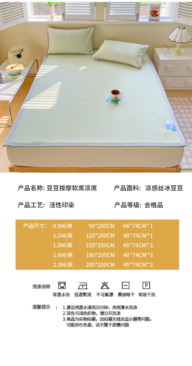 当前位置: 91家纺网 > 商品网购 > 床上用品 > 凉席 > 其他凉席 > 缦卡琳家纺 2025新款按摩豆豆凉席三件套 果绿色