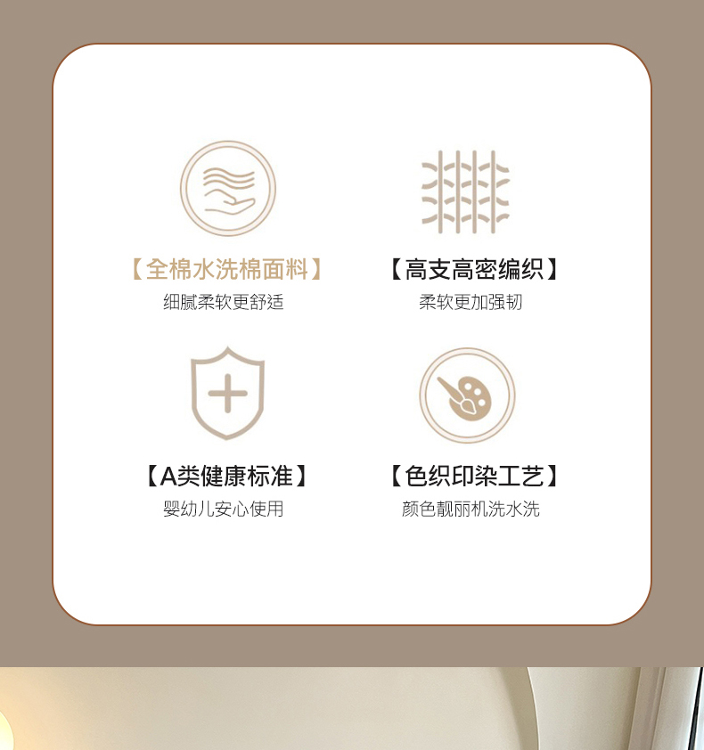 当前位置: 91家纺网 > 商品网购 > 床品套件 > 四件套 > 其它四件套 > 21度C 2025复古风全棉A类母婴级四件套 夏沫咖