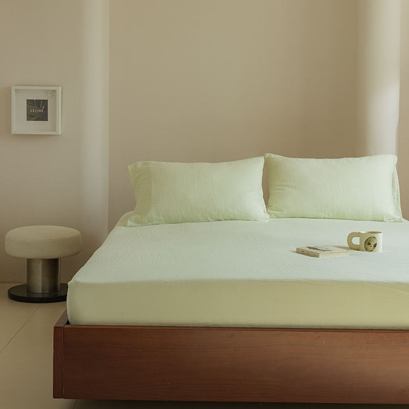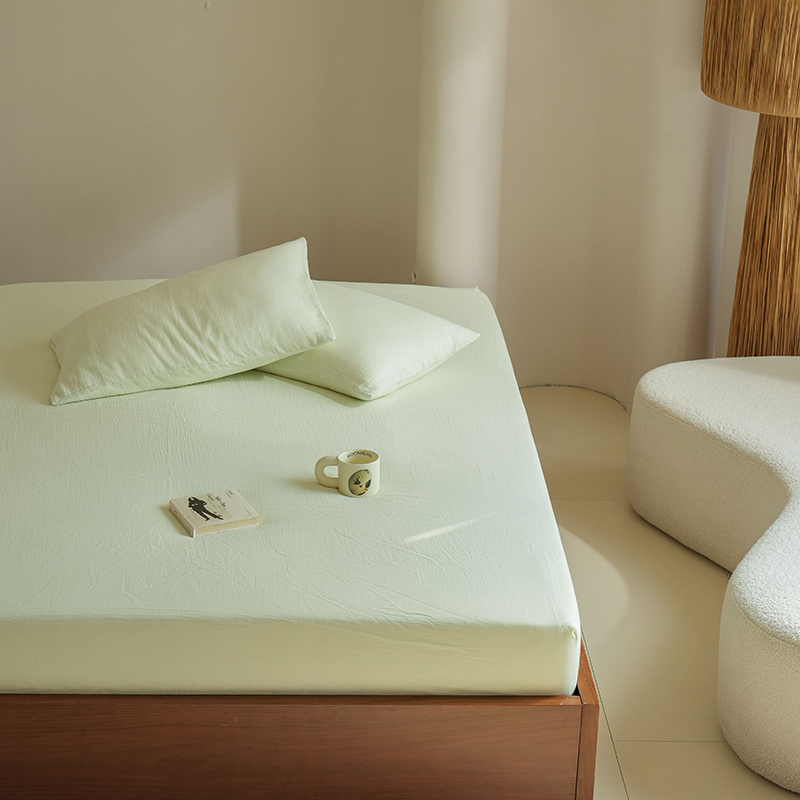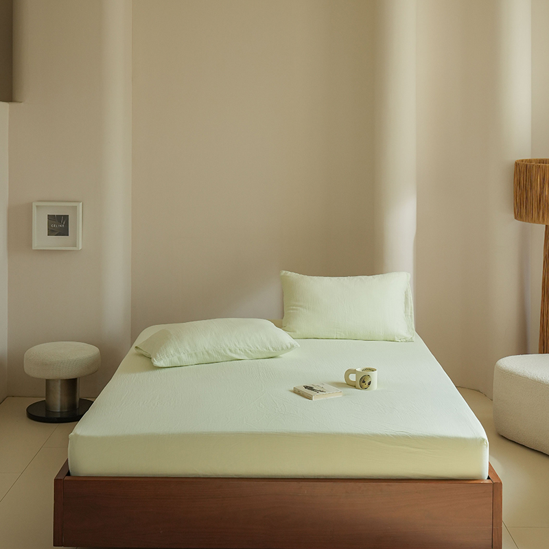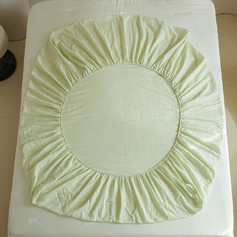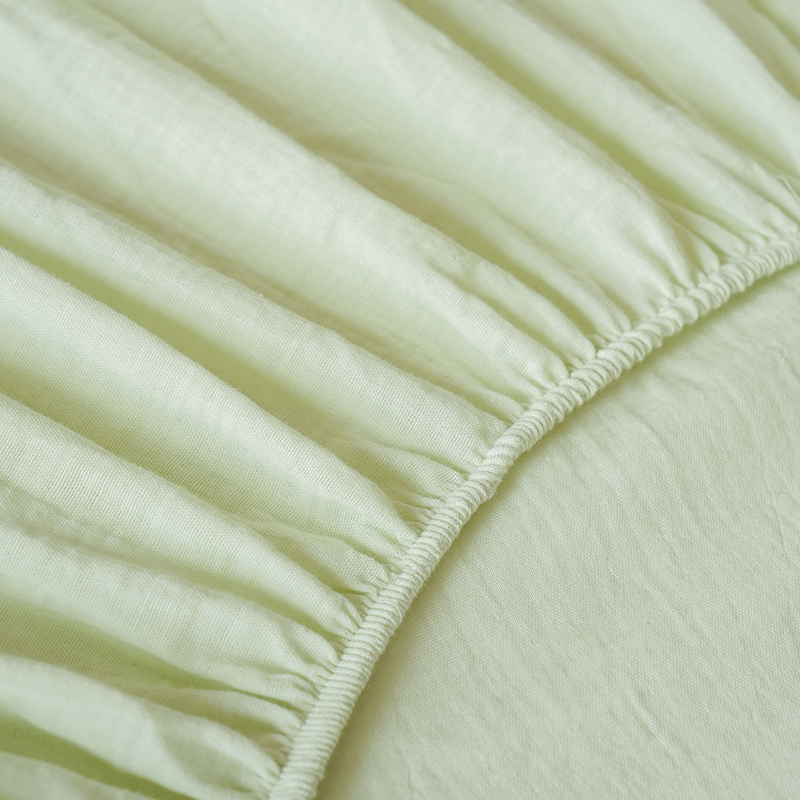 简纯主义 2025新款全棉有机雾感纱双层皱皱纱系列单床笠绿豆