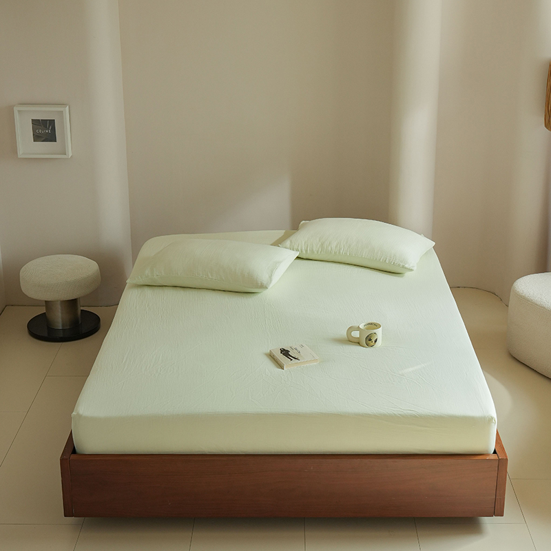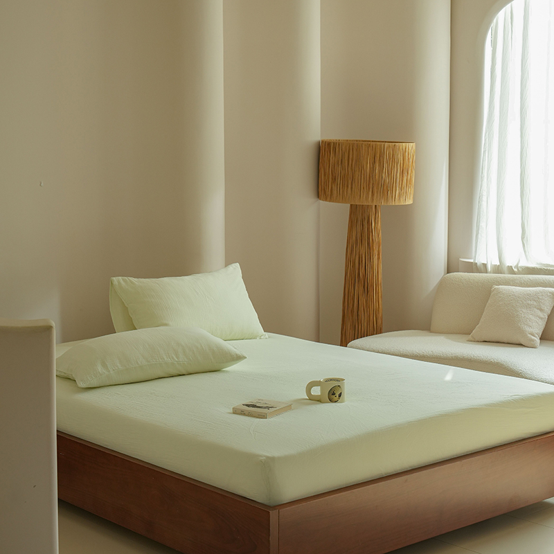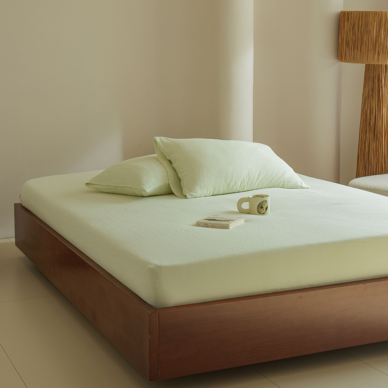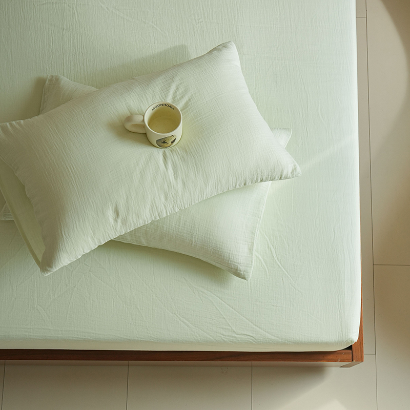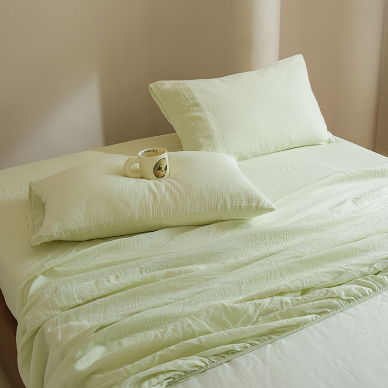 简纯主义 2025新款全棉有机雾感纱双层皱皱纱系列单床笠绿豆