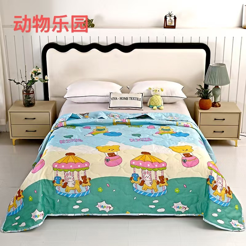 富之纹家纺 2025新款钻石绒亲肤棉超声波夏被夏凉被空调被压花礼品直播引流爆款 动物乐园