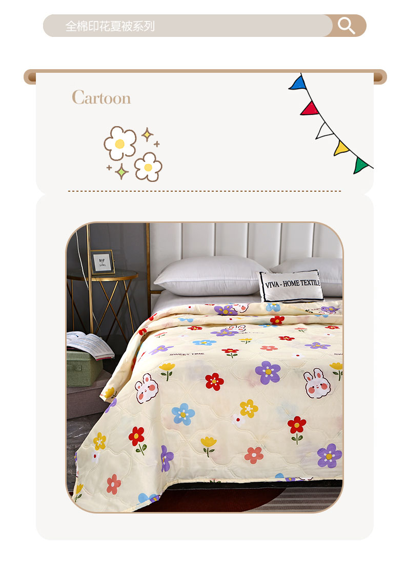 商品名称:富之纹家纺 2025新款钻石绒亲肤棉超声波夏被夏凉被空调被压花礼品直播引流爆款 花萌兔