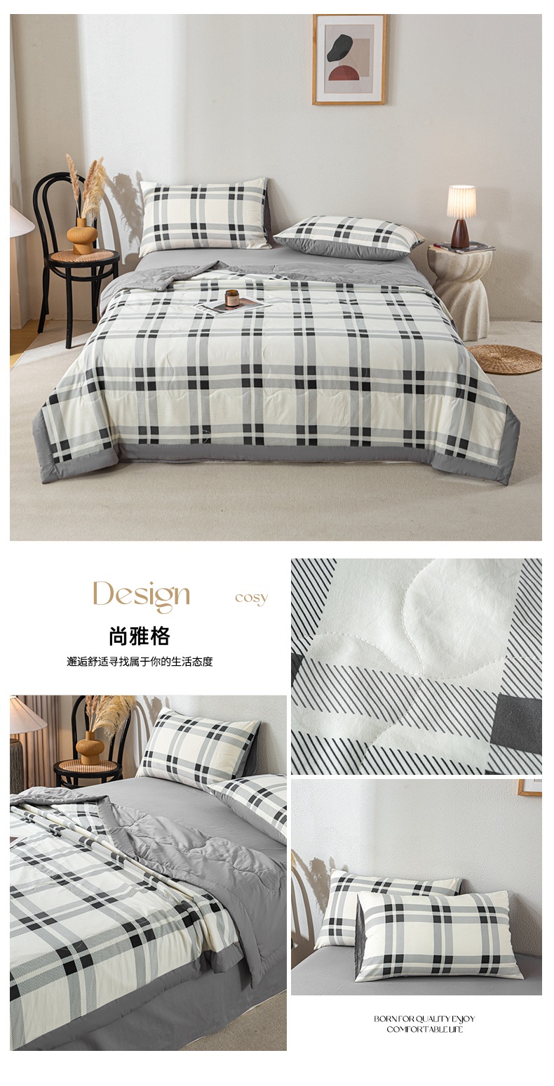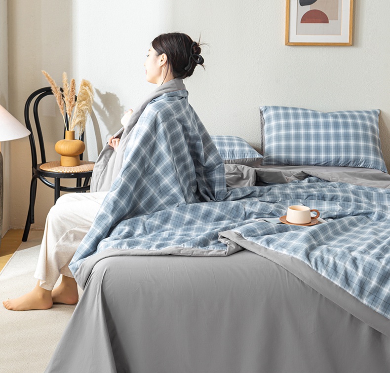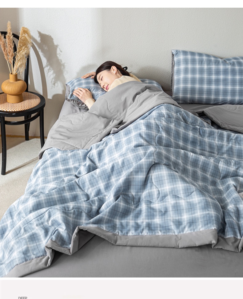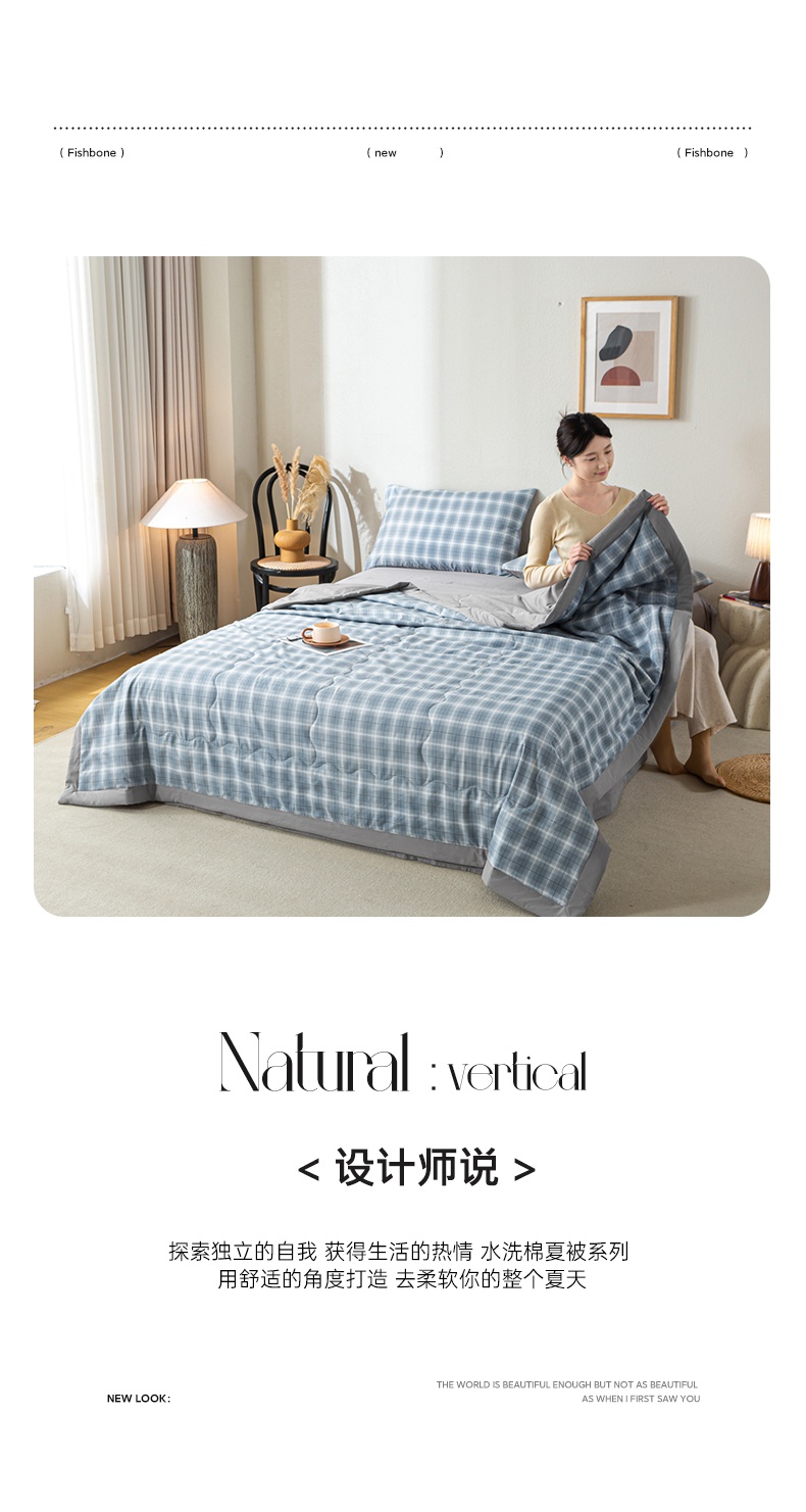 慕木家纺 2025新款A类水洗棉无印风纯色新疆棉花夏被空调被(抽空压缩可供跨境) 时光兰格