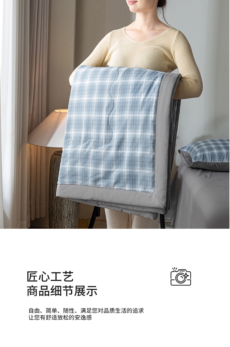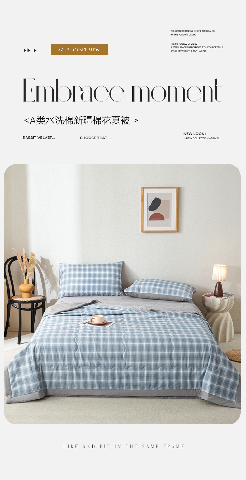 • 91家纺网 家纺一手货源 找家纺 慕木家纺 2025新款A类水洗棉无印风纯色新疆棉花夏被空调被(抽空压缩可供跨境) 时光兰格