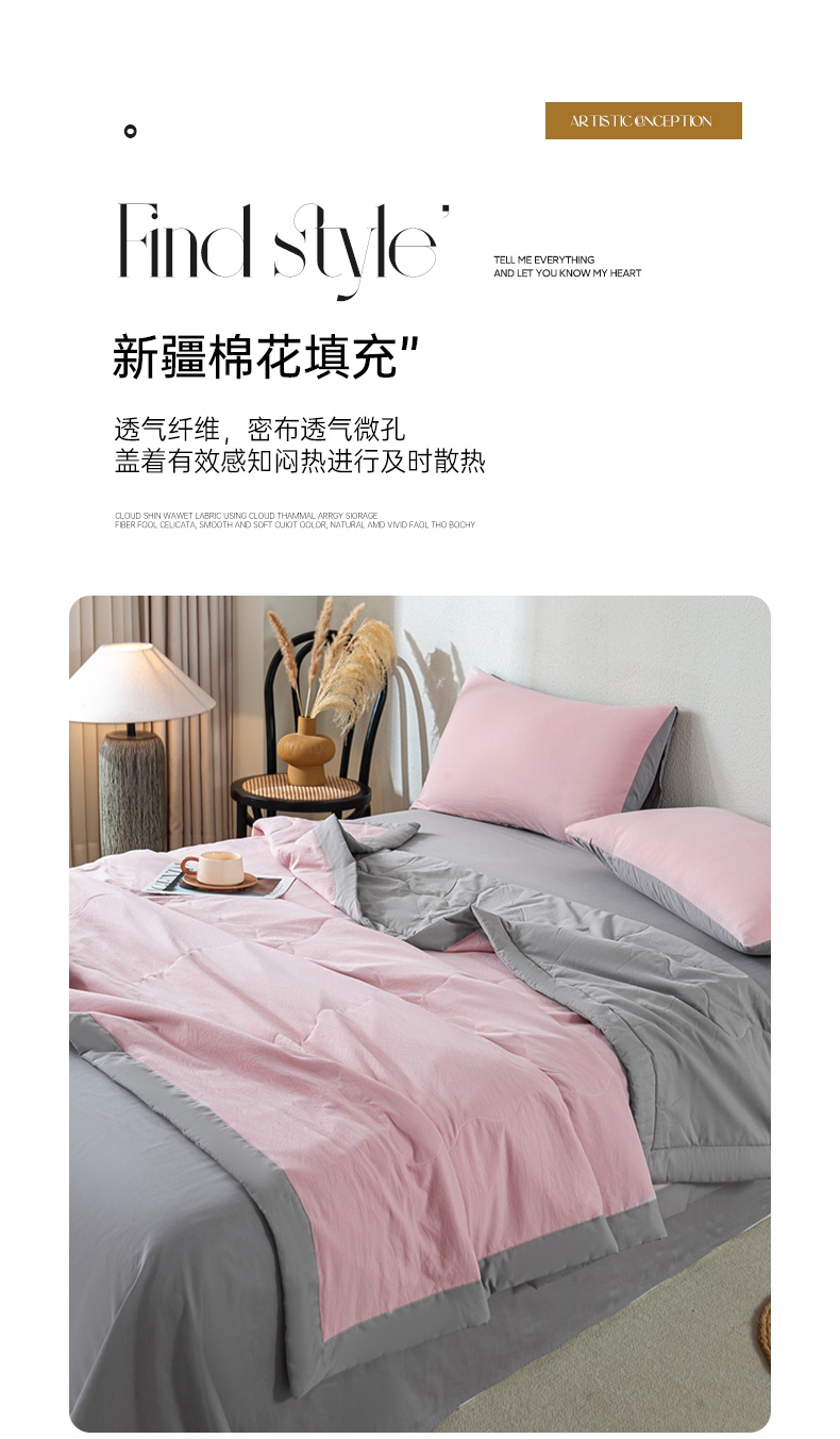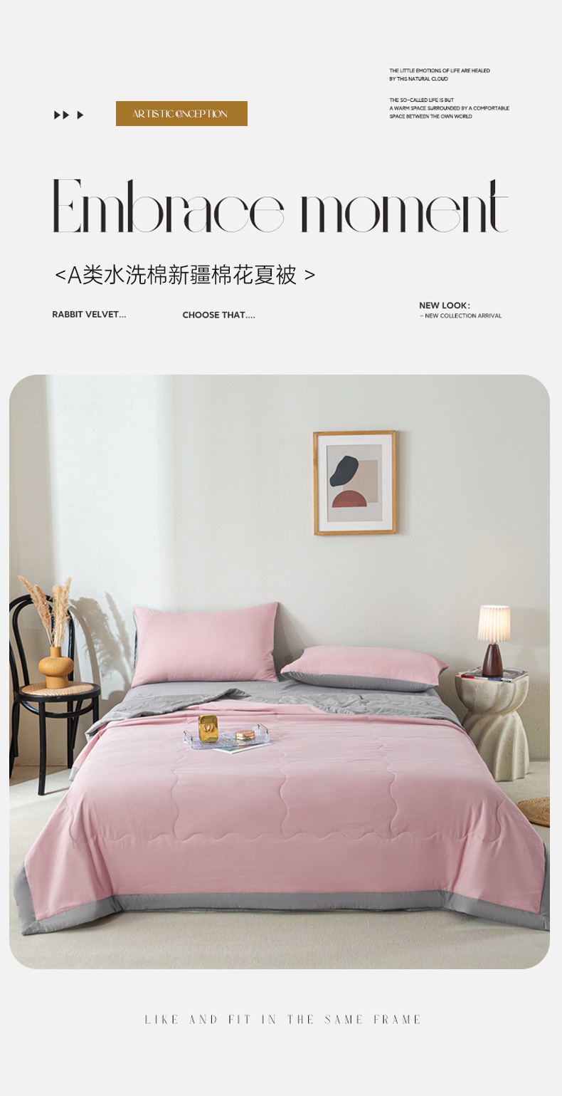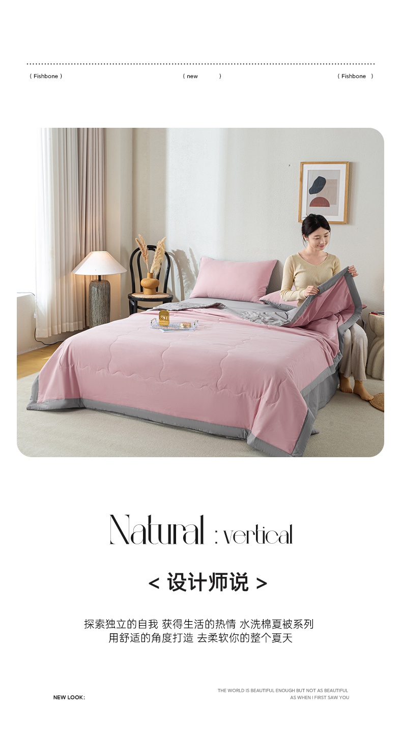 • 91家纺网 家纺一手货源 找家纺 慕木家纺 2025新款A类水洗棉无印风纯色新疆棉花夏被空调被(抽空压缩可供跨境) 香玉粉+灰