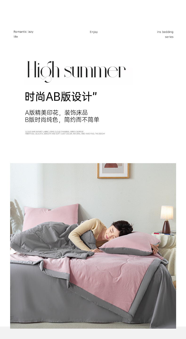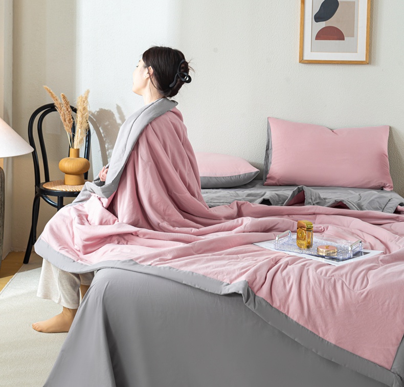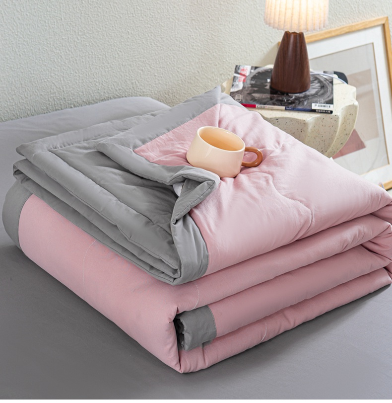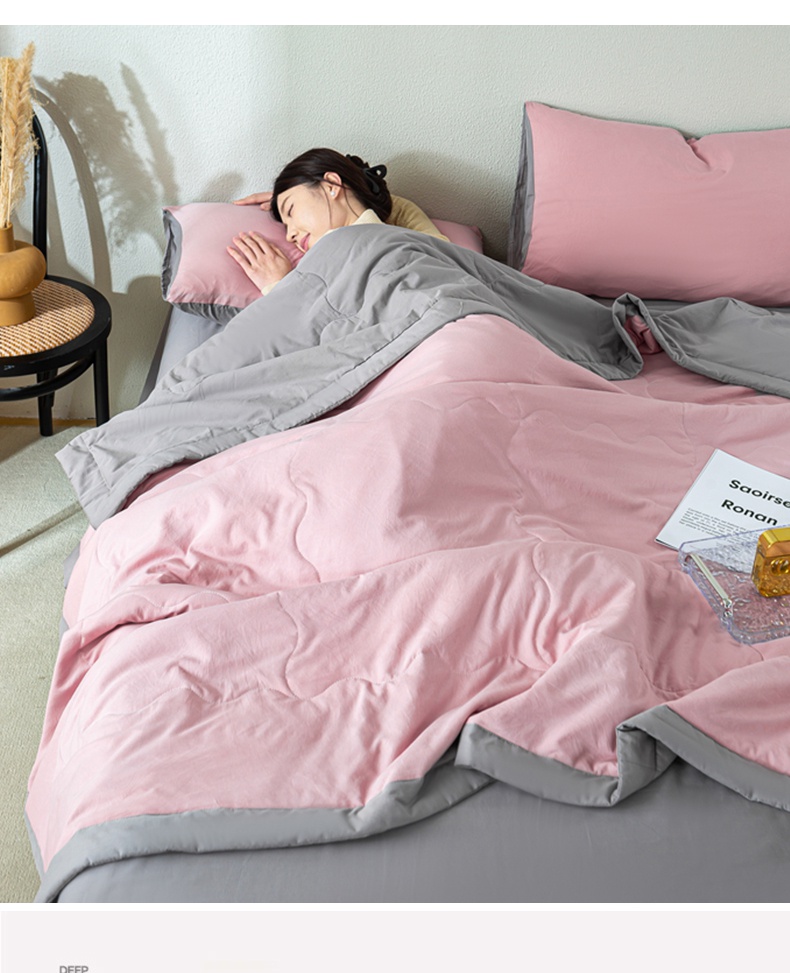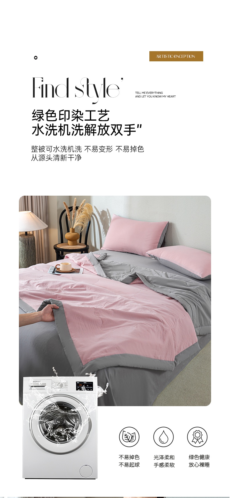 • 91家纺网 家纺一手货源 找家纺 慕木家纺 2025新款A类水洗棉无印风纯色新疆棉花夏被空调被(抽空压缩可供跨境) 香玉粉+灰