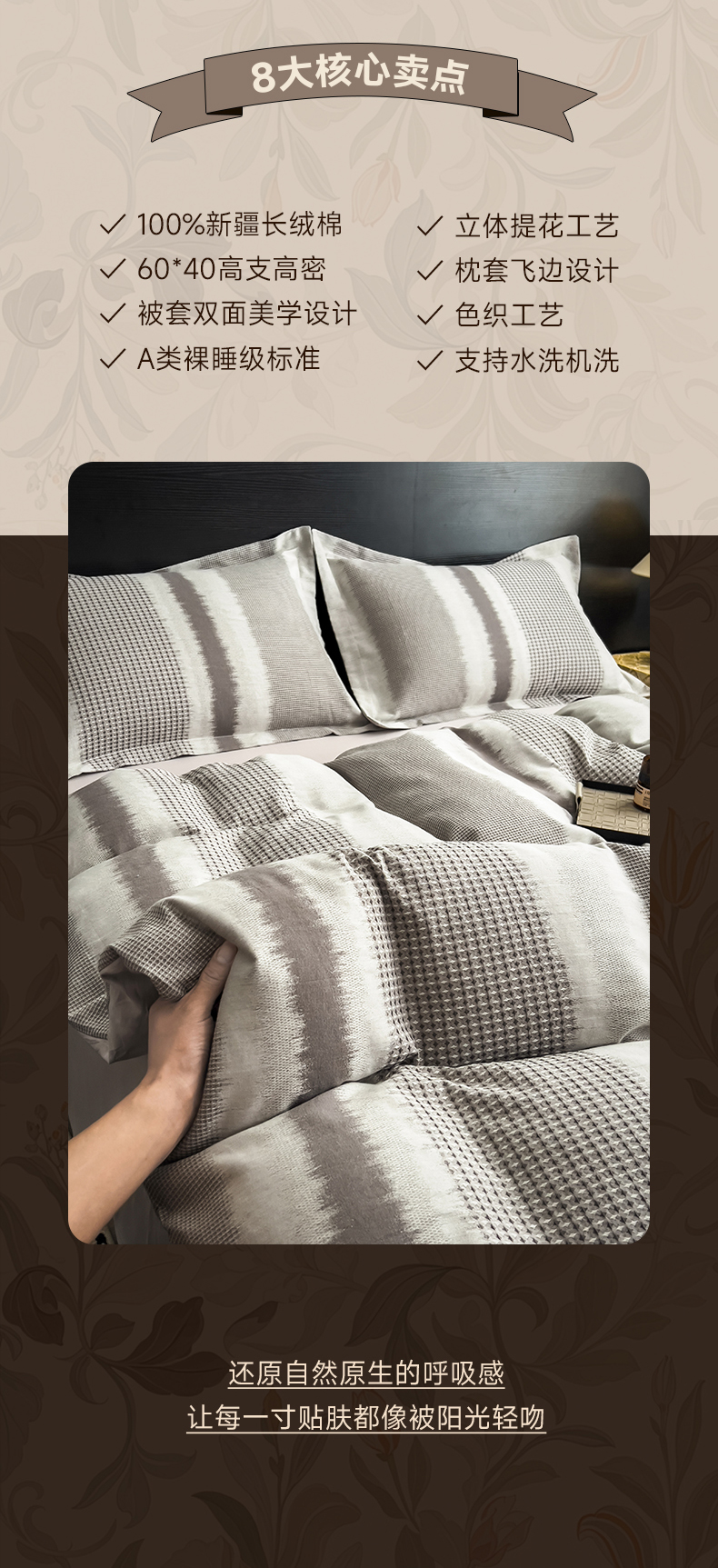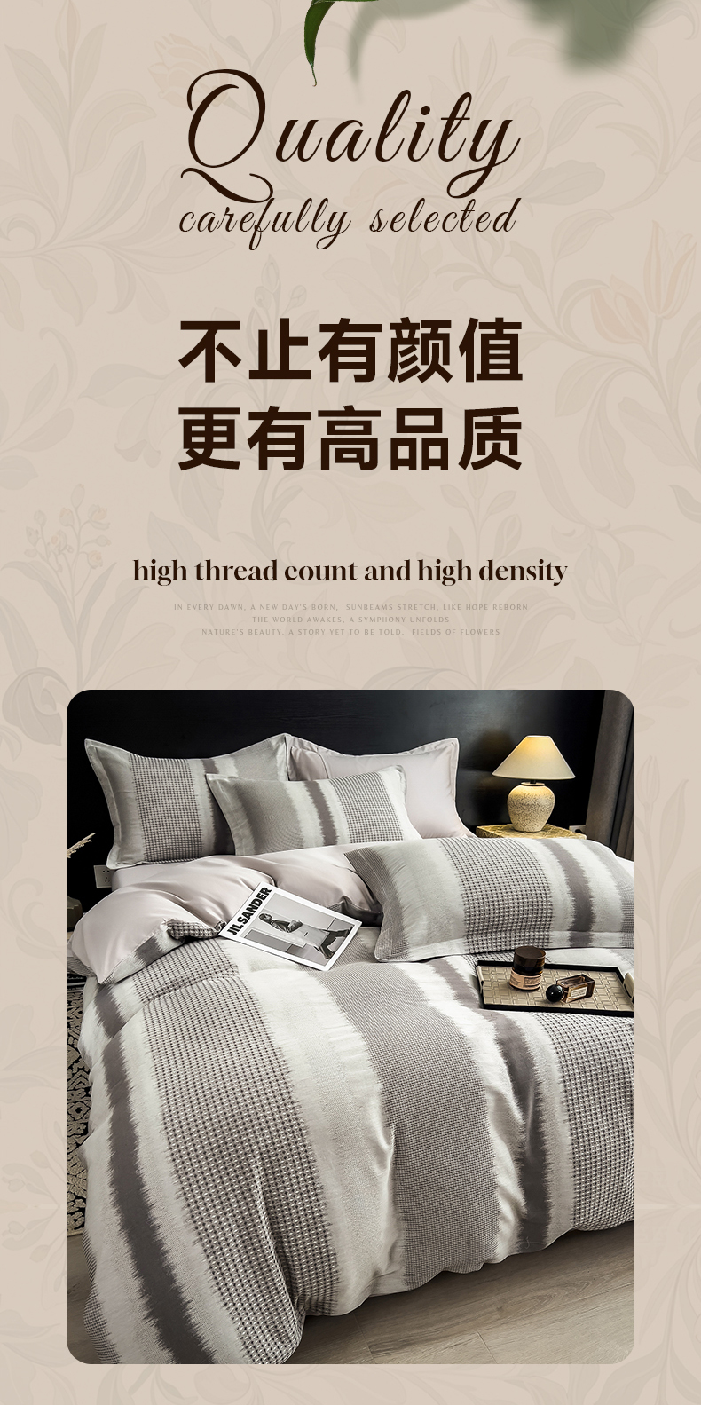 商品名称:倾慕家纺 2025新款60S提花全棉单品被套 波格灰