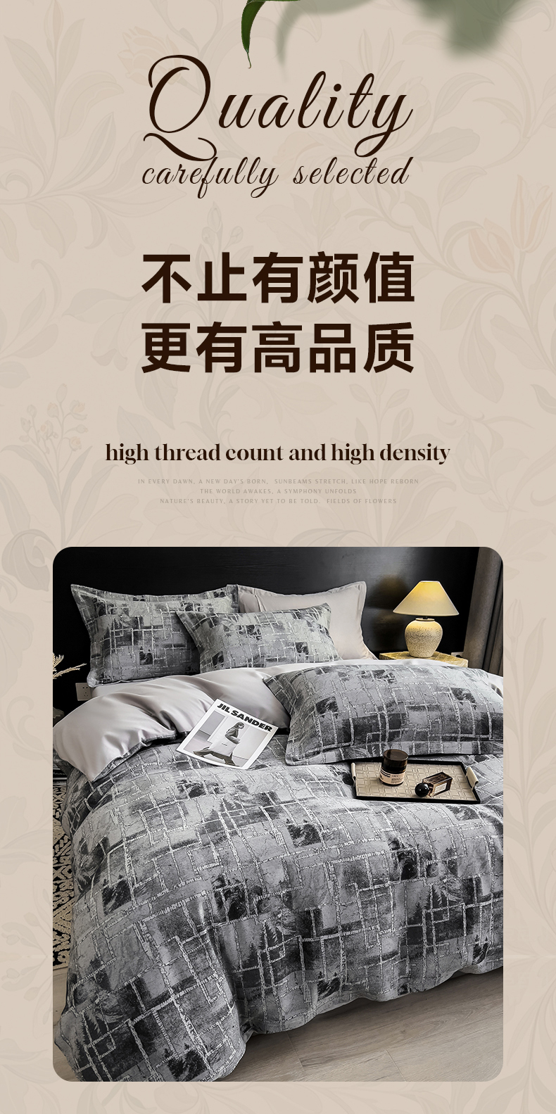 商品名称:倾慕家纺 2025新款60S提花全棉单品被套 异向空间深灰