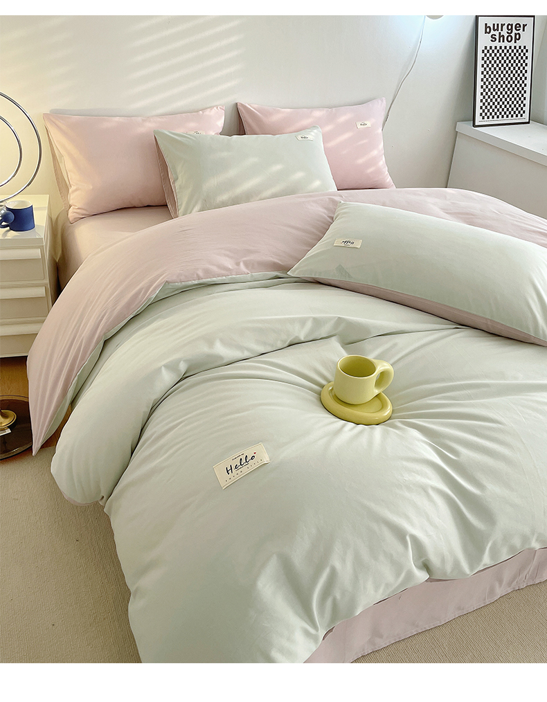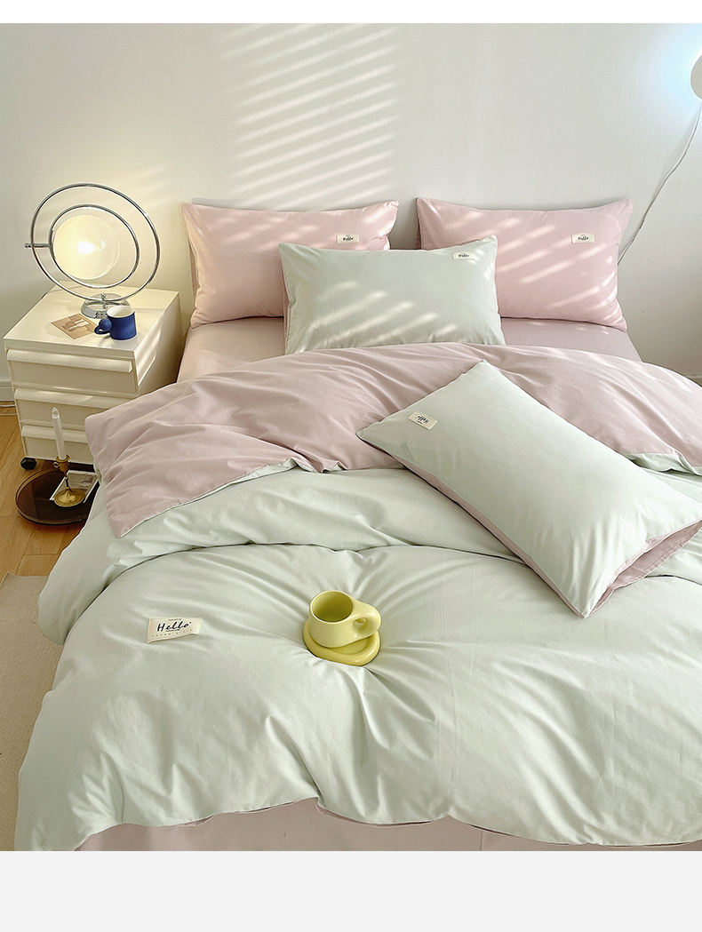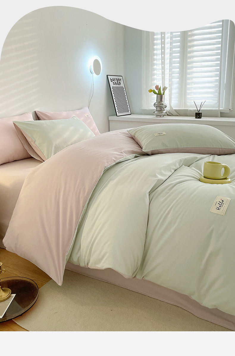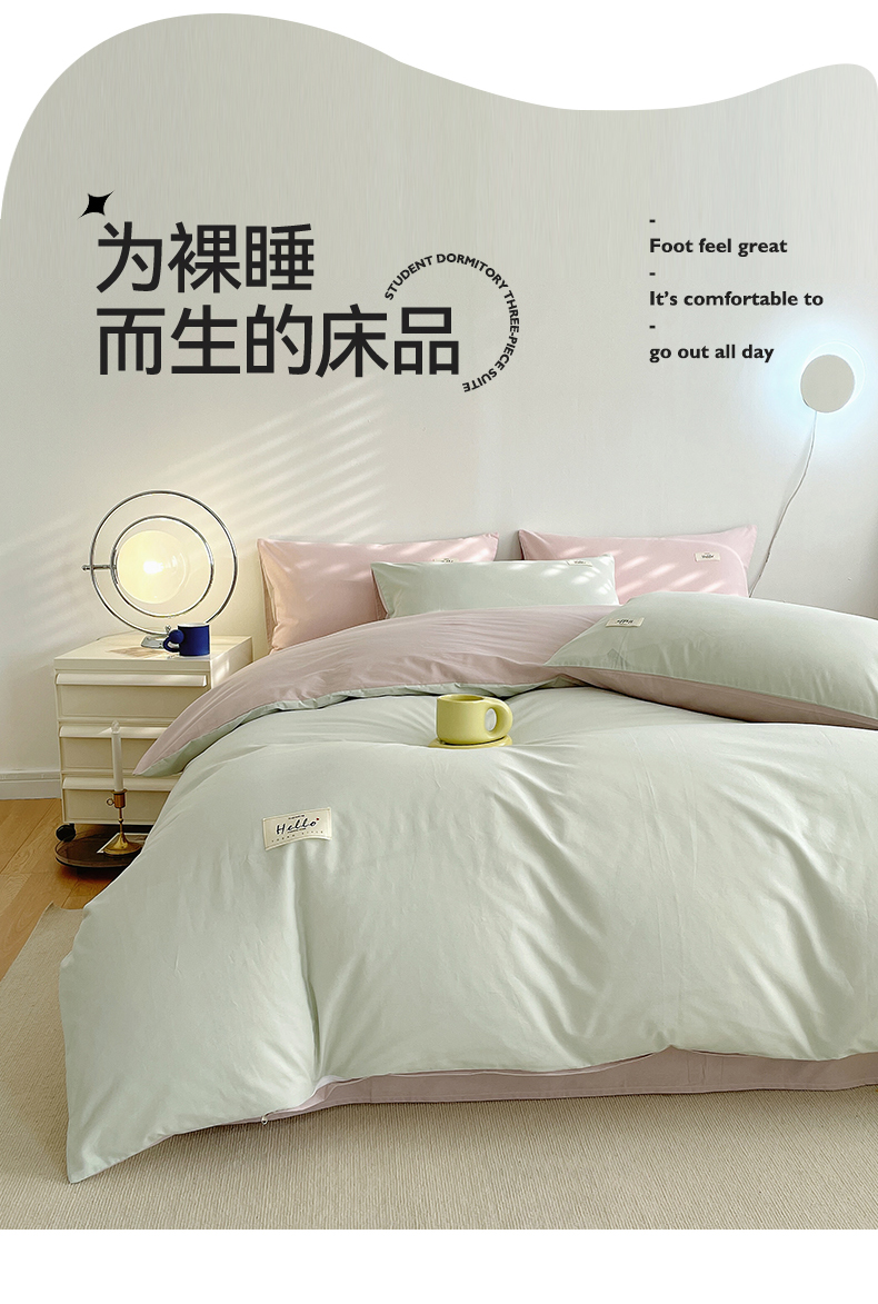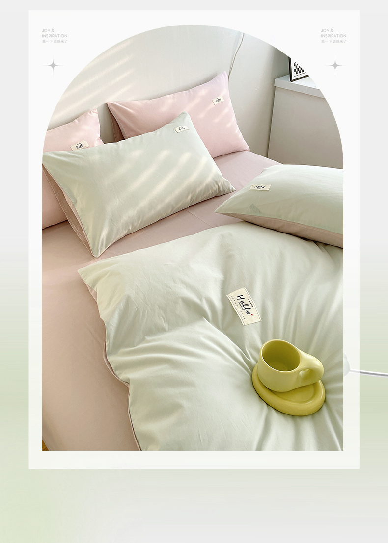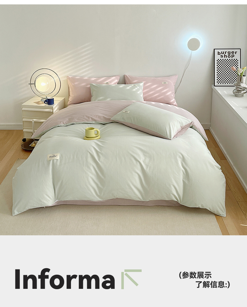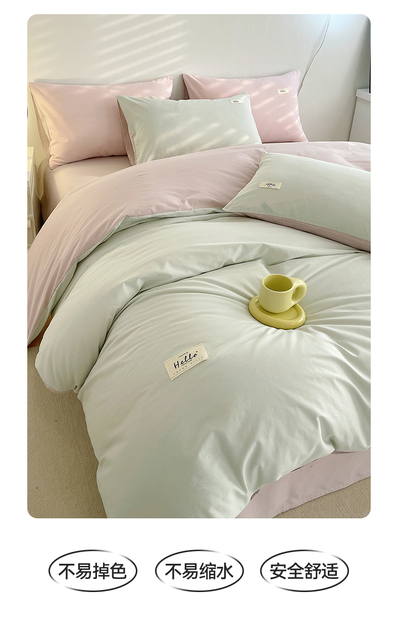 (总)798家纺 2025新款全棉双拼纯色良品四件套,碧绿+奶白,布鲁蓝+梧桐灰,豆绿+芍药粉,奶白+豆绿,奶白+青草绿,浅夏紫+芍药粉,肉肉粉+班尼咖,肉肉粉+千夏紫,肉肉粉+小雏菊,石灰+梧桐灰