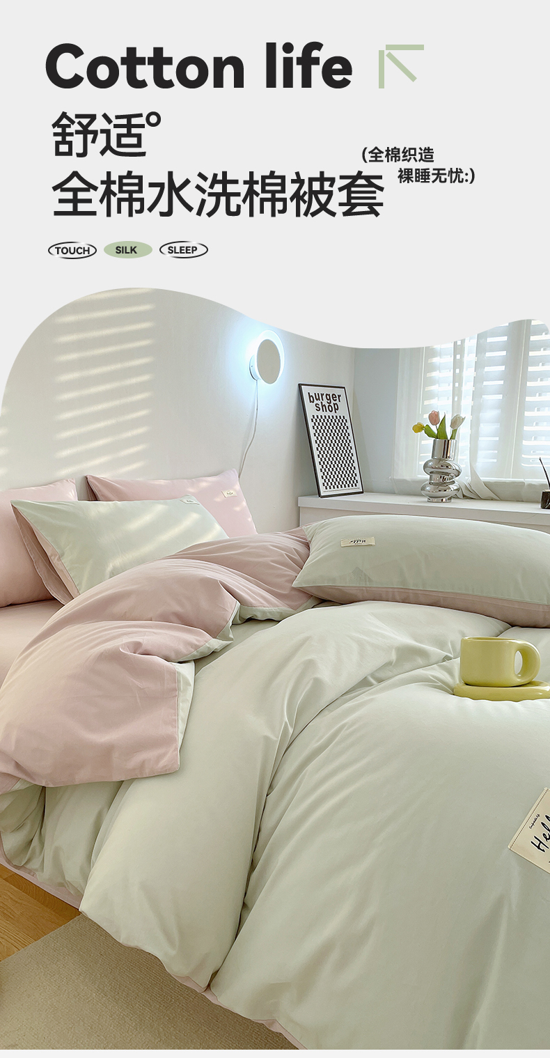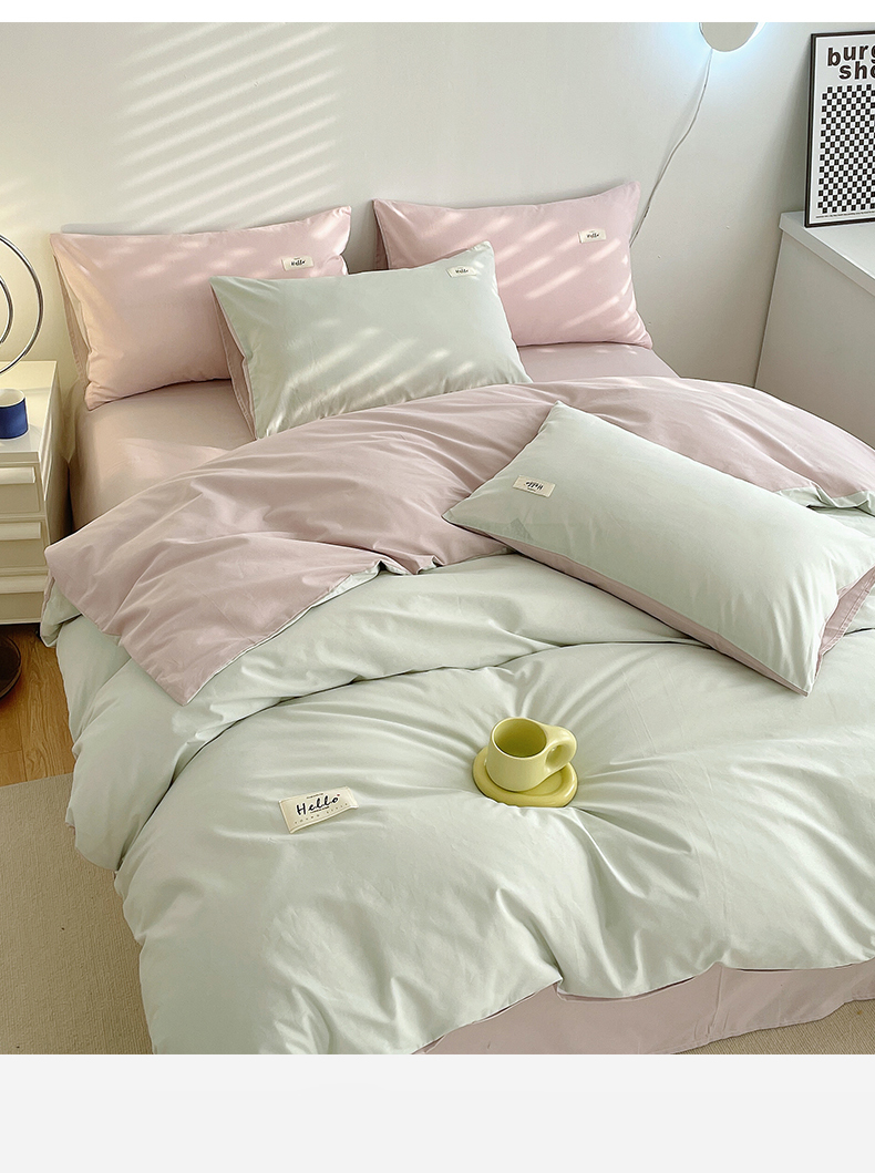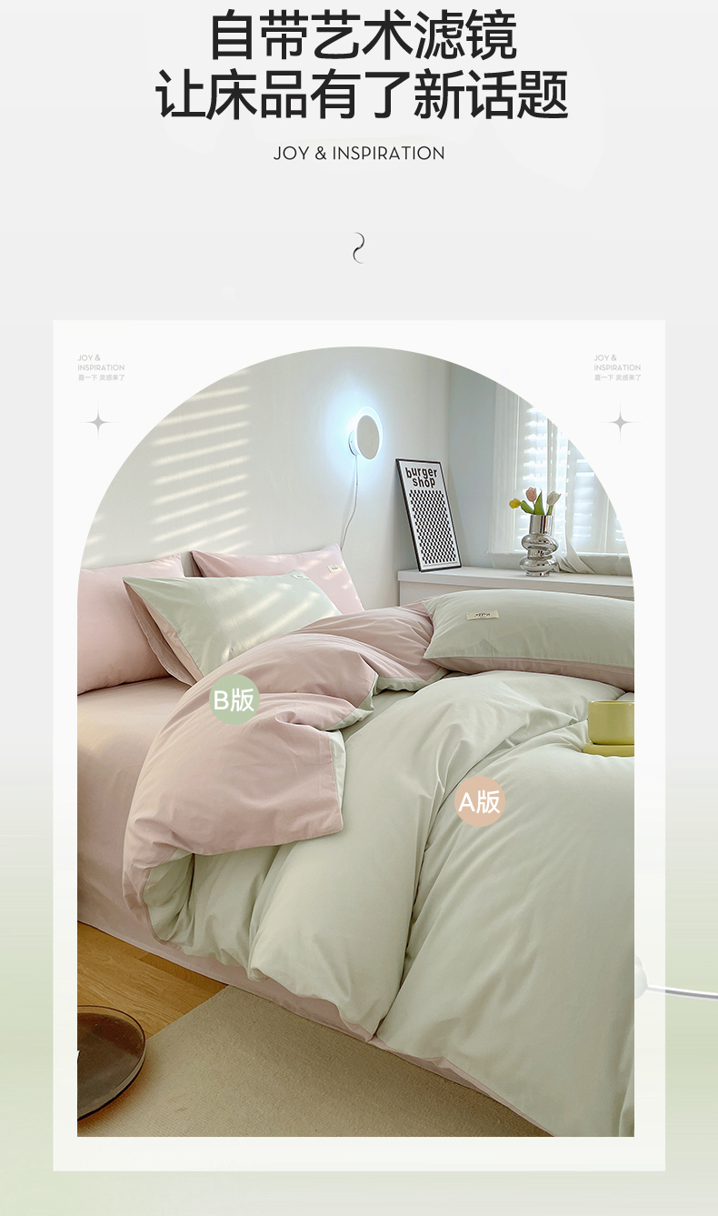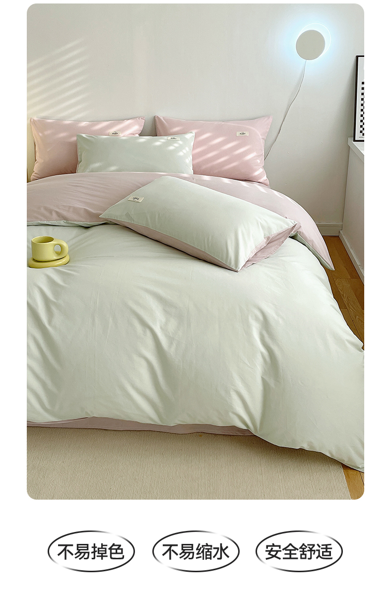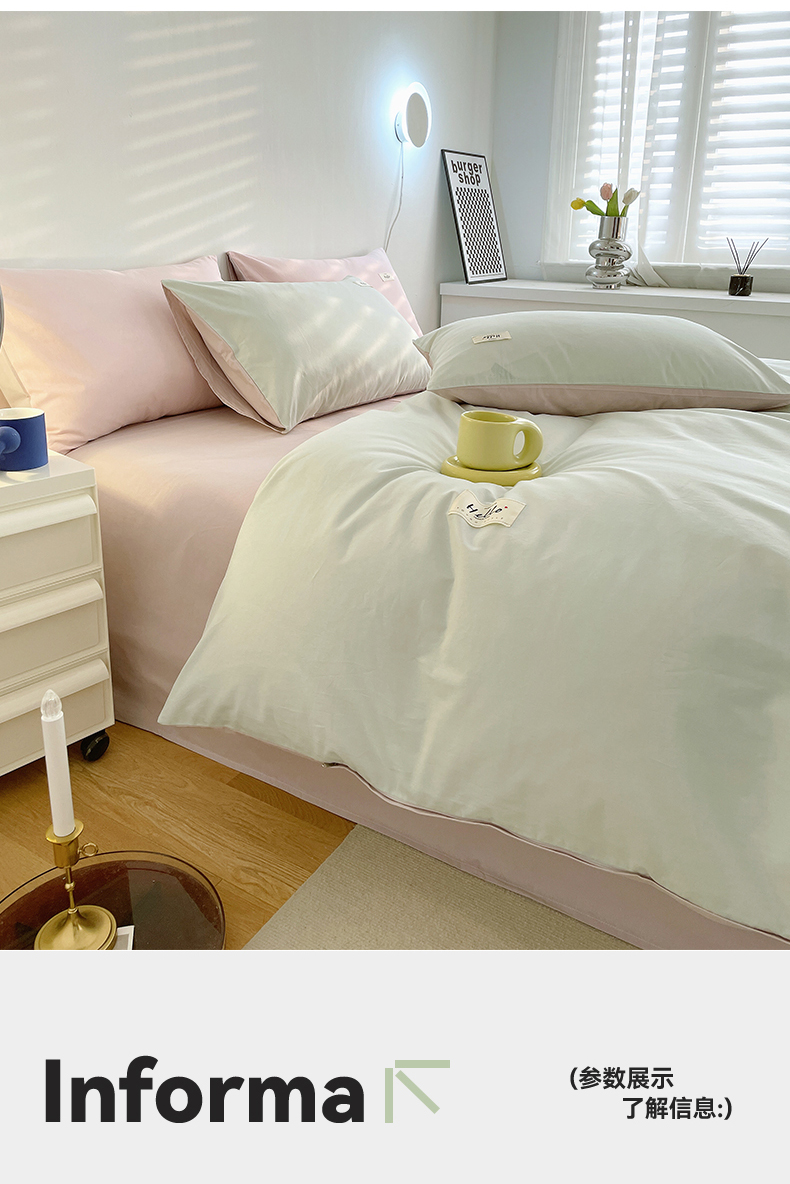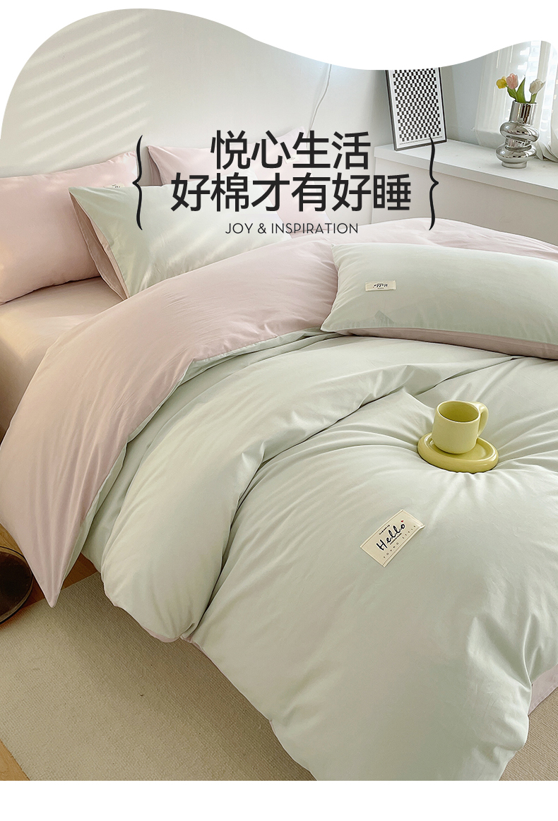 (总)798家纺 2025新款全棉双拼纯色良品四件套,碧绿+奶白,布鲁蓝+梧桐灰,豆绿+芍药粉,奶白+豆绿,奶白+青草绿,浅夏紫+芍药粉,肉肉粉+班尼咖,肉肉粉+千夏紫,肉肉粉+小雏菊,石灰+梧桐灰