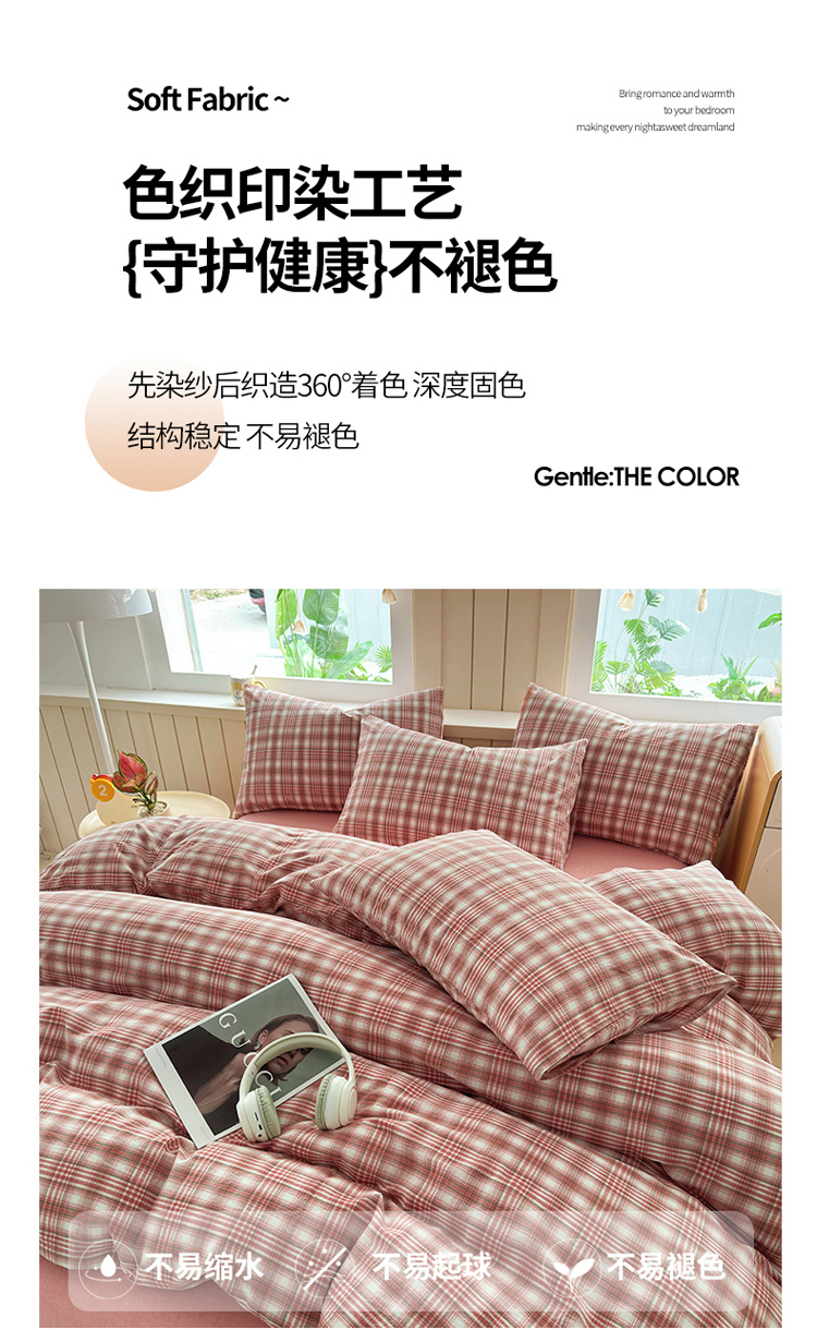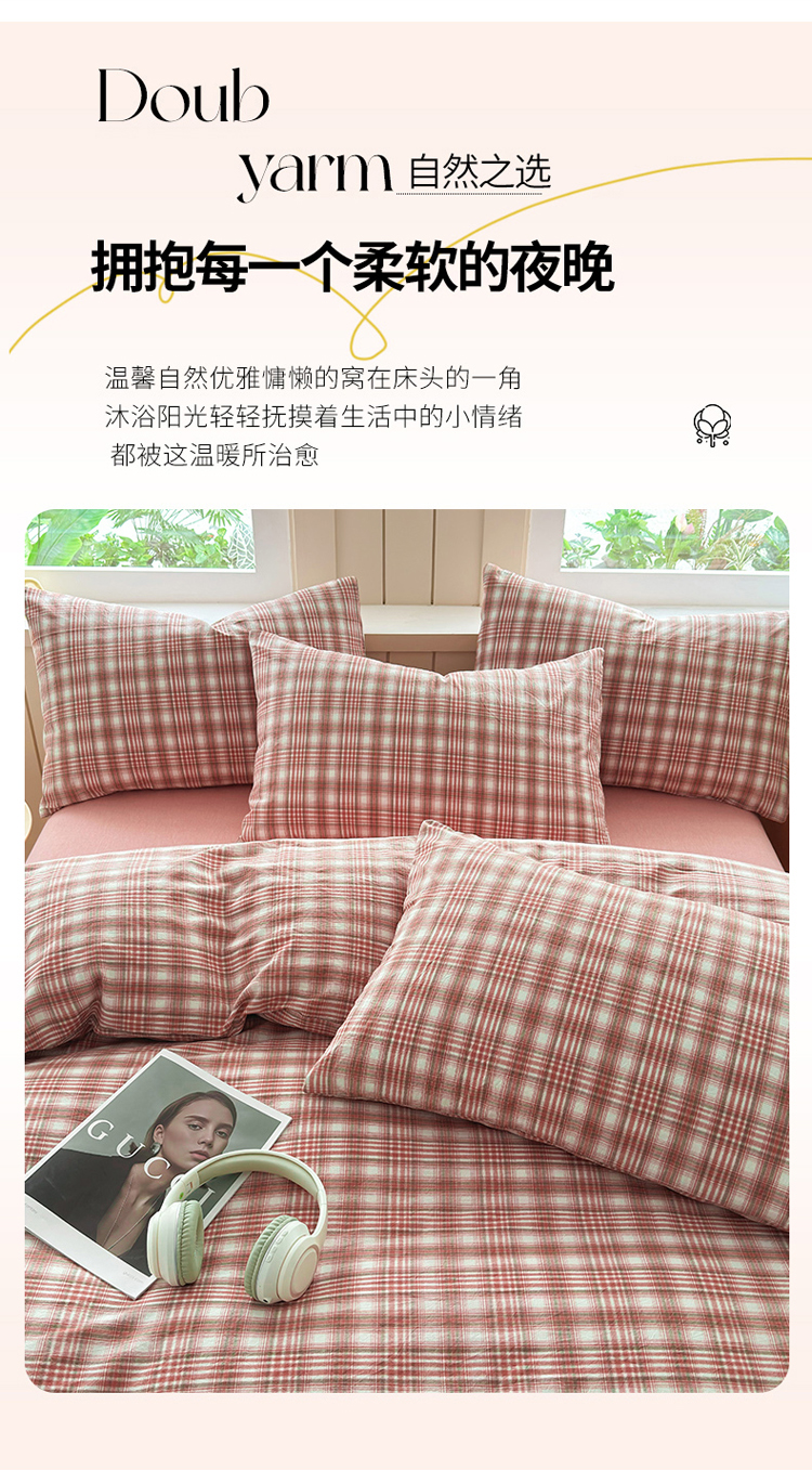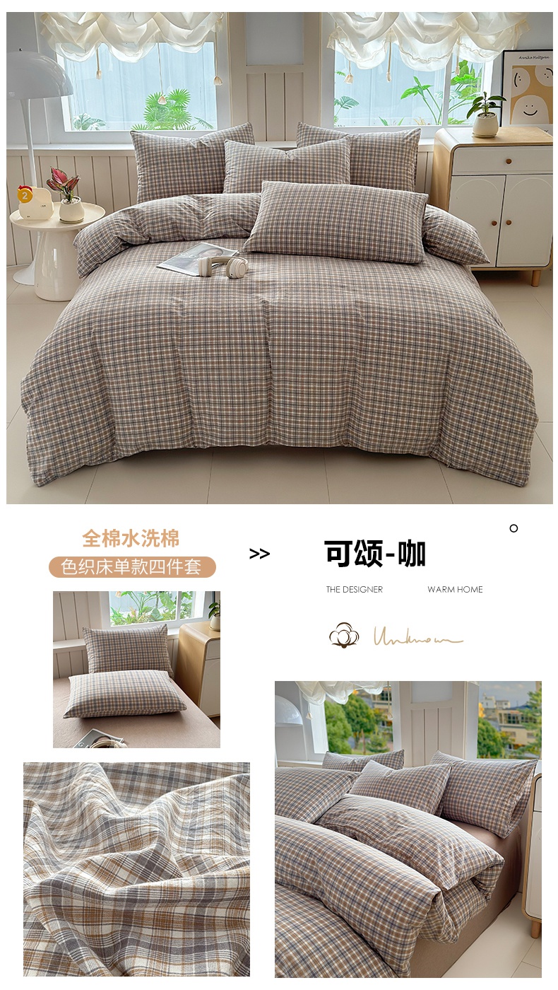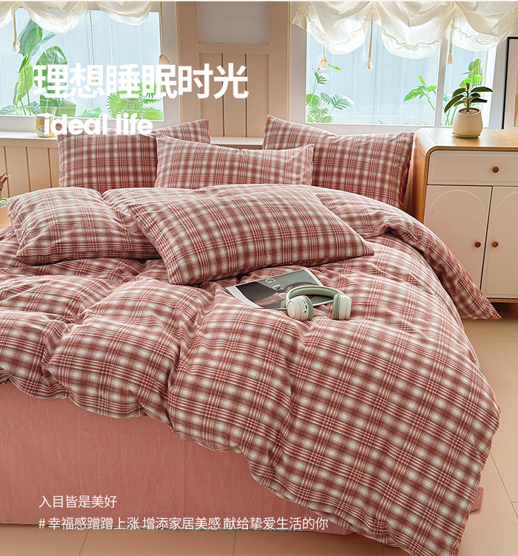 (总)梦精灵家纺 2025新款全棉纯棉色织水洗棉床盖四件套学生床宿舍被套床单枕套,可颂-咖,利奥-红,利奥-蓝,利奥-绿,罗恩-灰,维多利亚-米,西蒙-黄,西蒙-蓝,左岸-粉,雅灰,棕咖,鹅黄,幻影绿,桔红