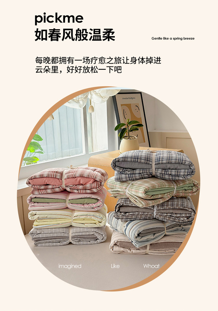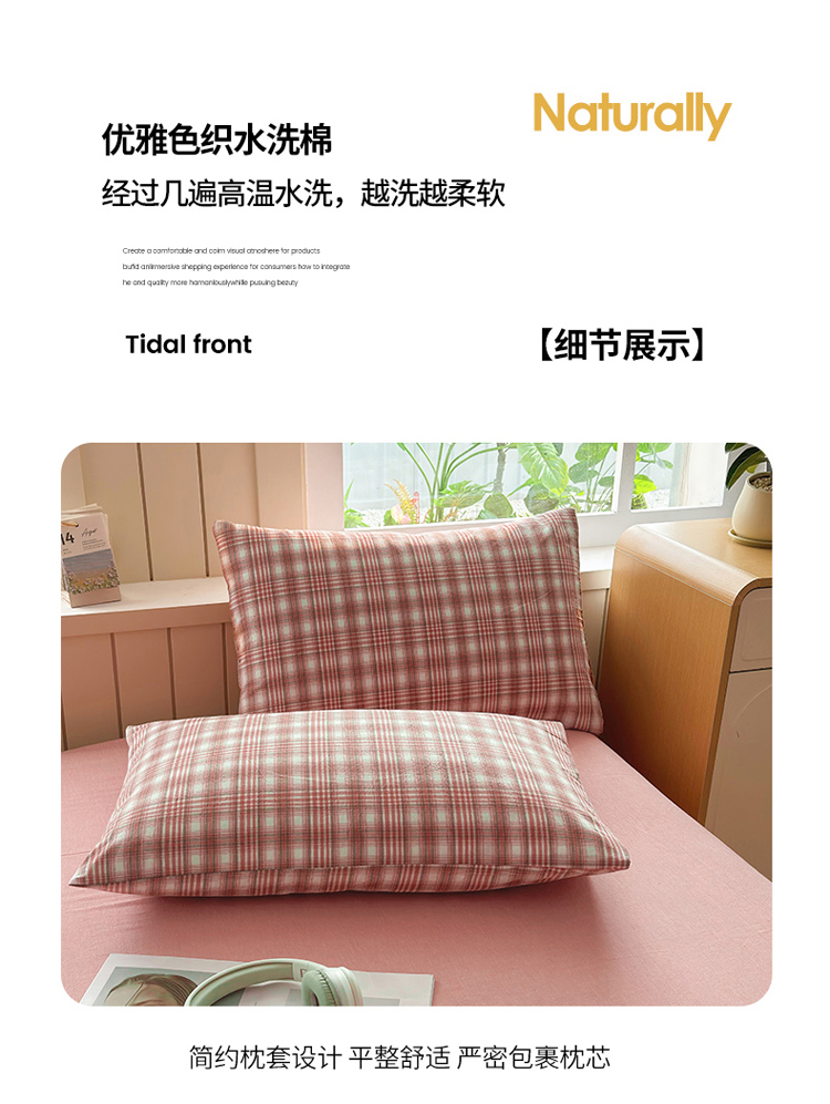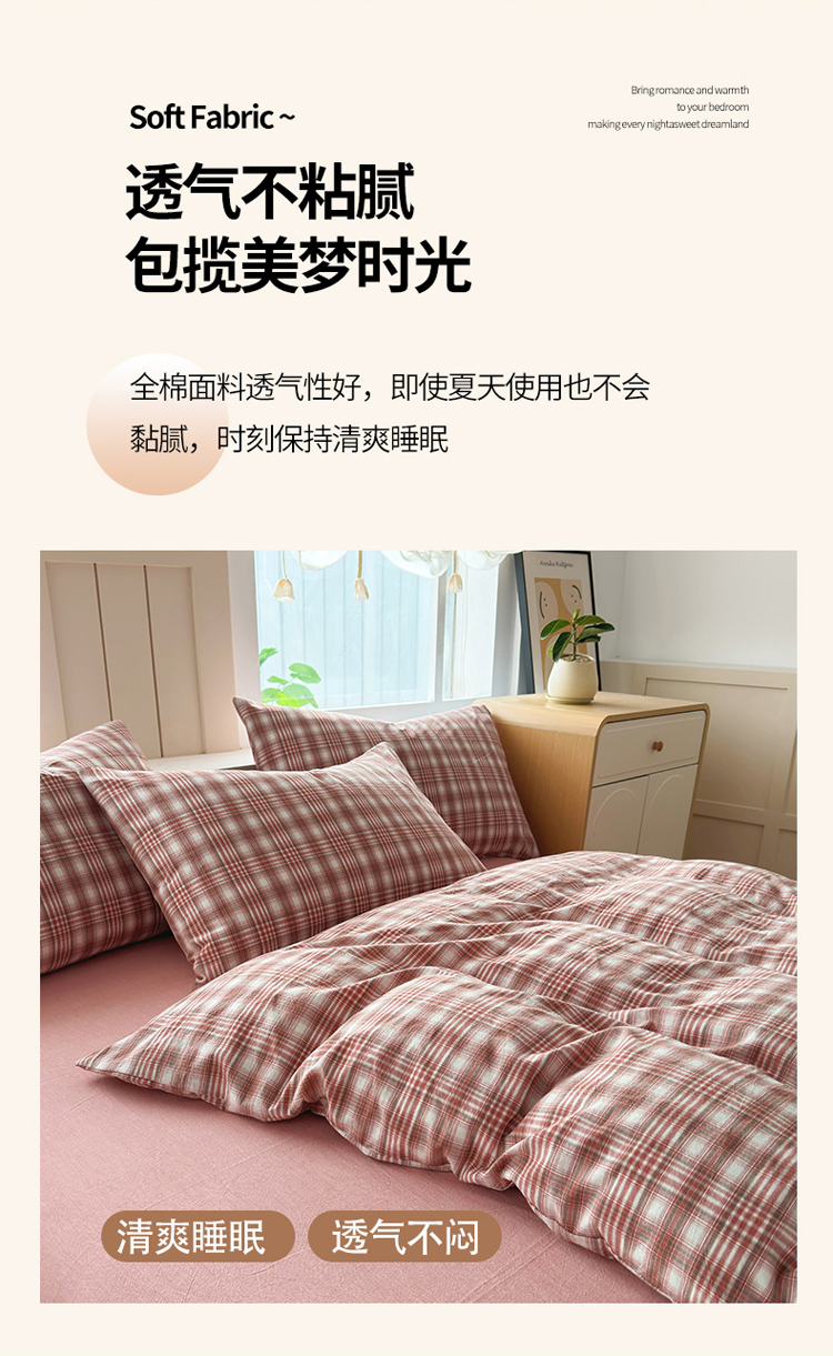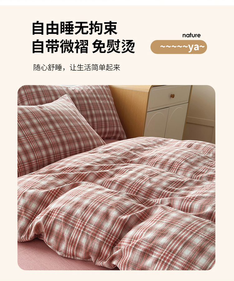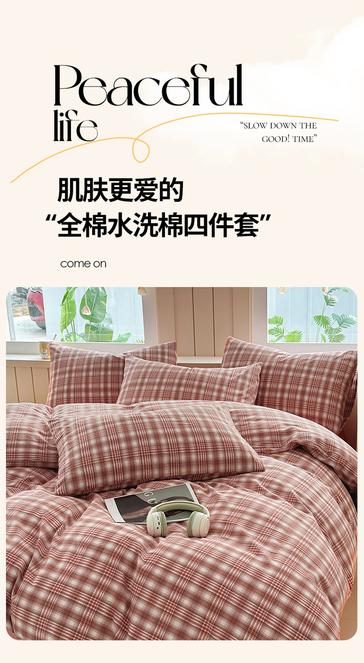 (总)梦精灵家纺 2025新款全棉纯棉色织水洗棉床盖四件套学生床宿舍被套床单枕套,可颂-咖,利奥-红,利奥-蓝,利奥-绿,罗恩-灰,维多利亚-米,西蒙-黄,西蒙-蓝,左岸-粉,雅灰,棕咖,鹅黄,幻影绿,桔红