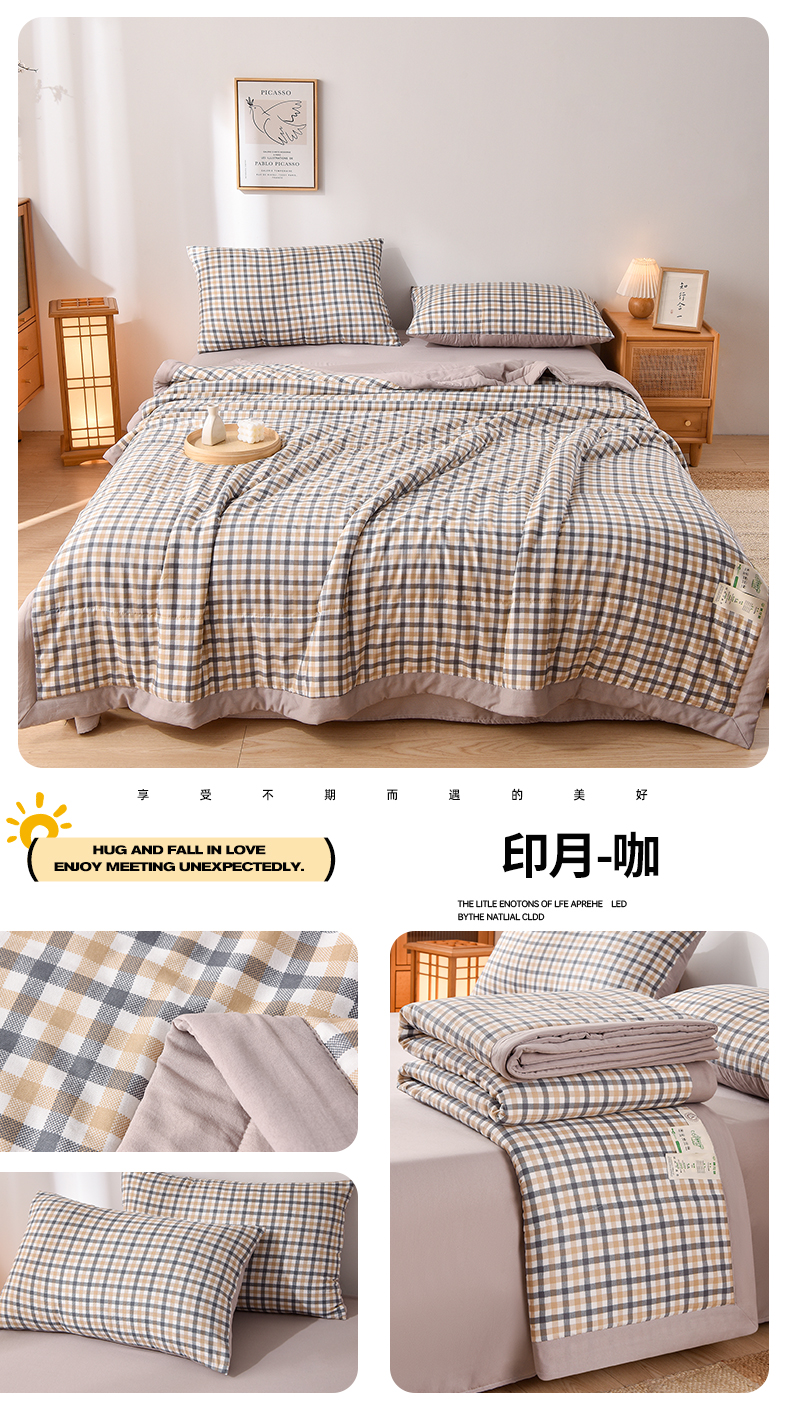 玉清坊 2025新款色织水洗棉新疆棉花夏被【支持一件代发】 印月-咖