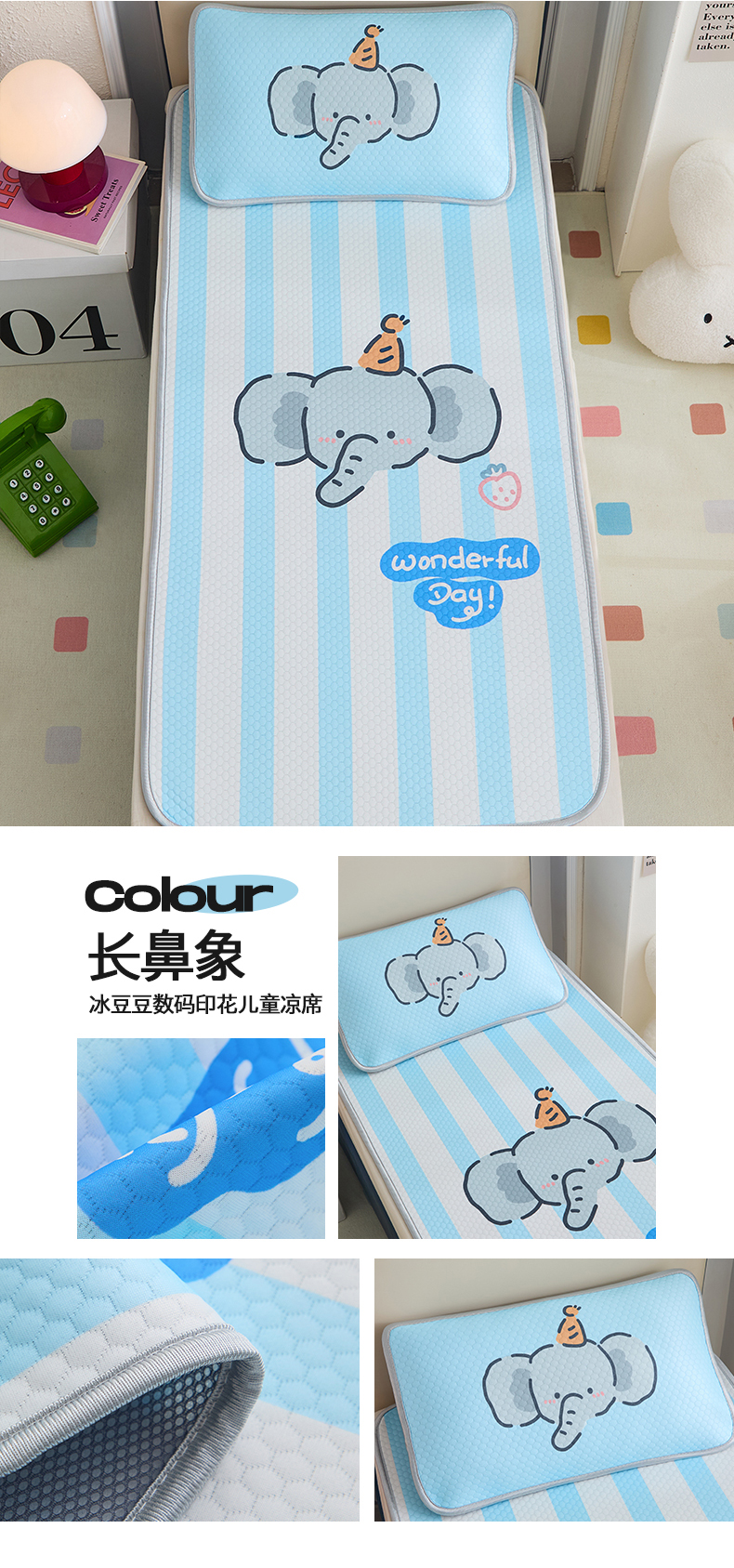 欣品希家纺 2025新款A类冰豆豆数码印花儿童凉席 长鼻象