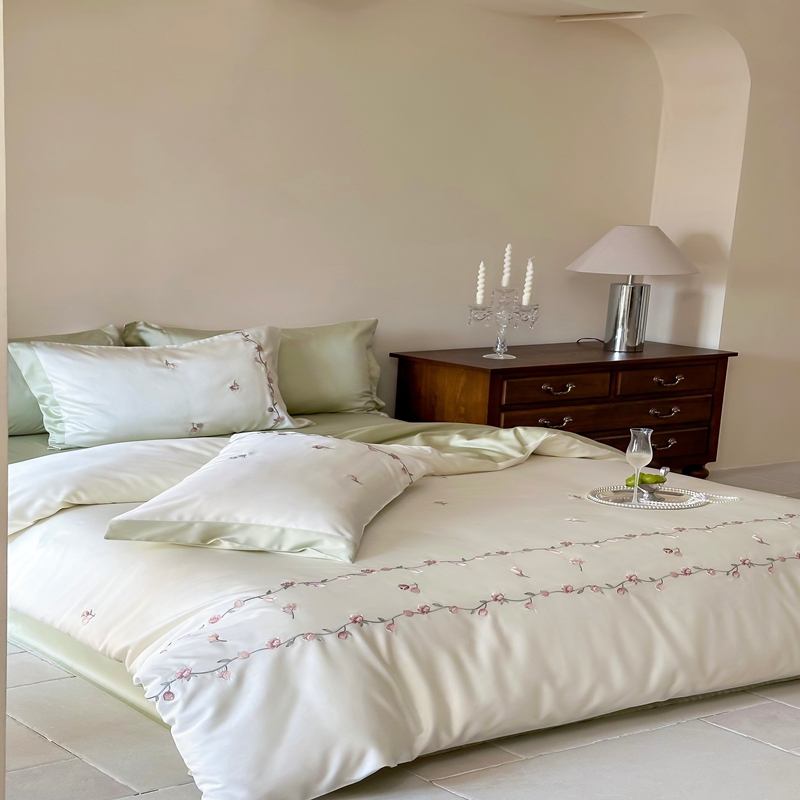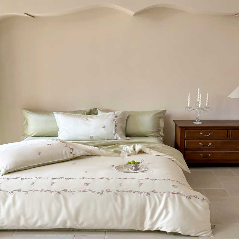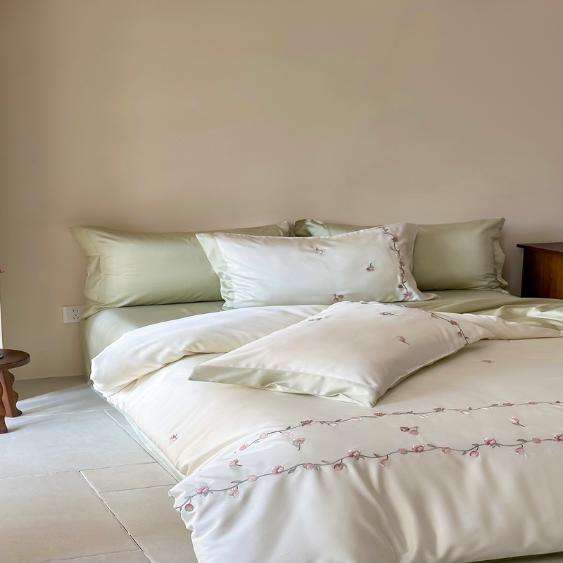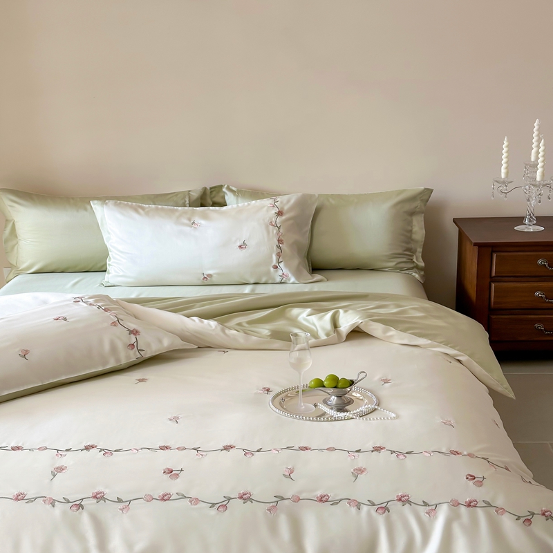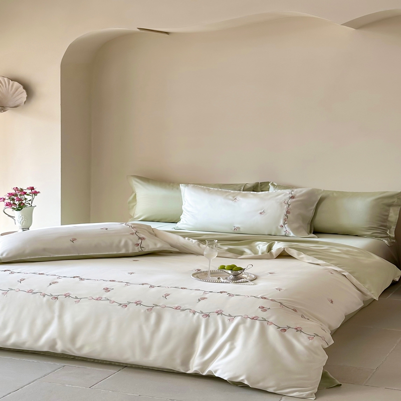 佳汐蓝家纺 2025新款春夏新品TENCEL兰精天丝四件套绣花系列 花颜如梦·珍珠绿
