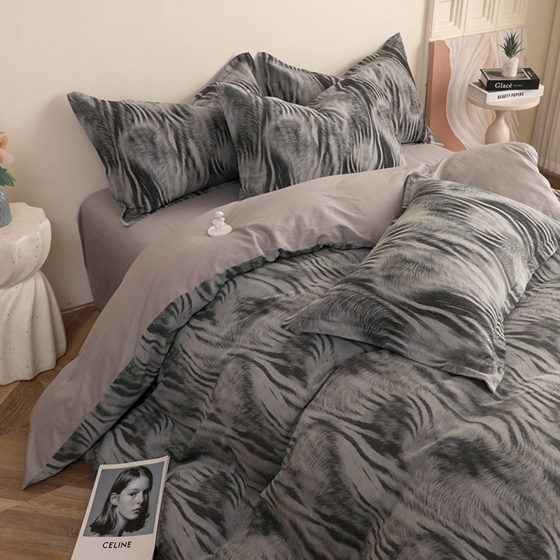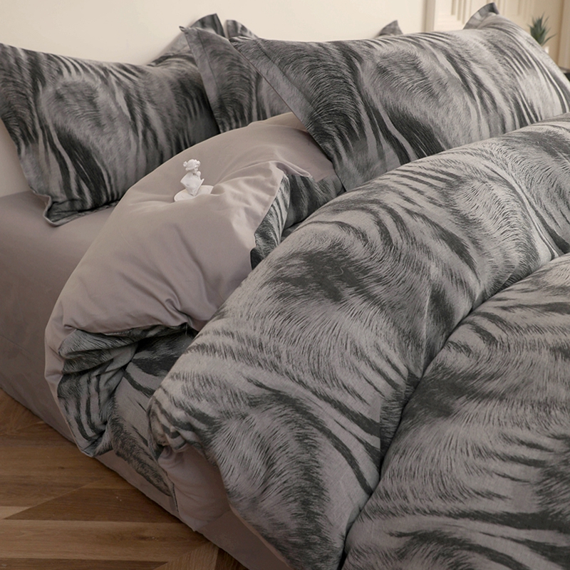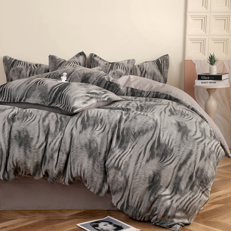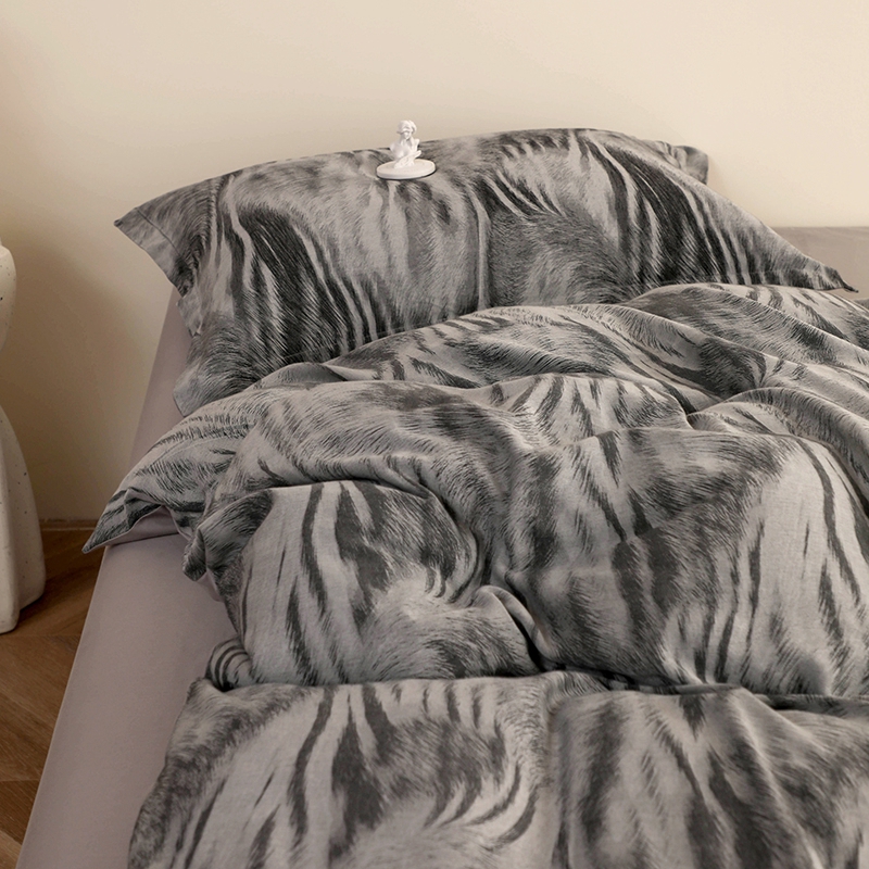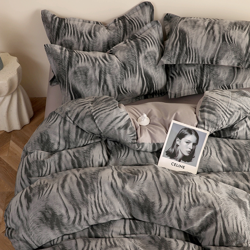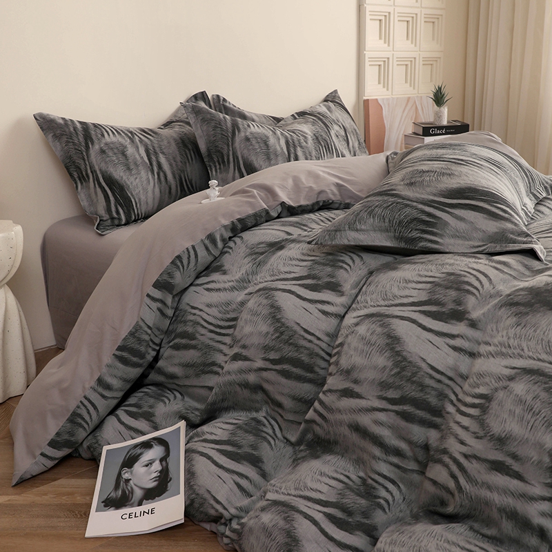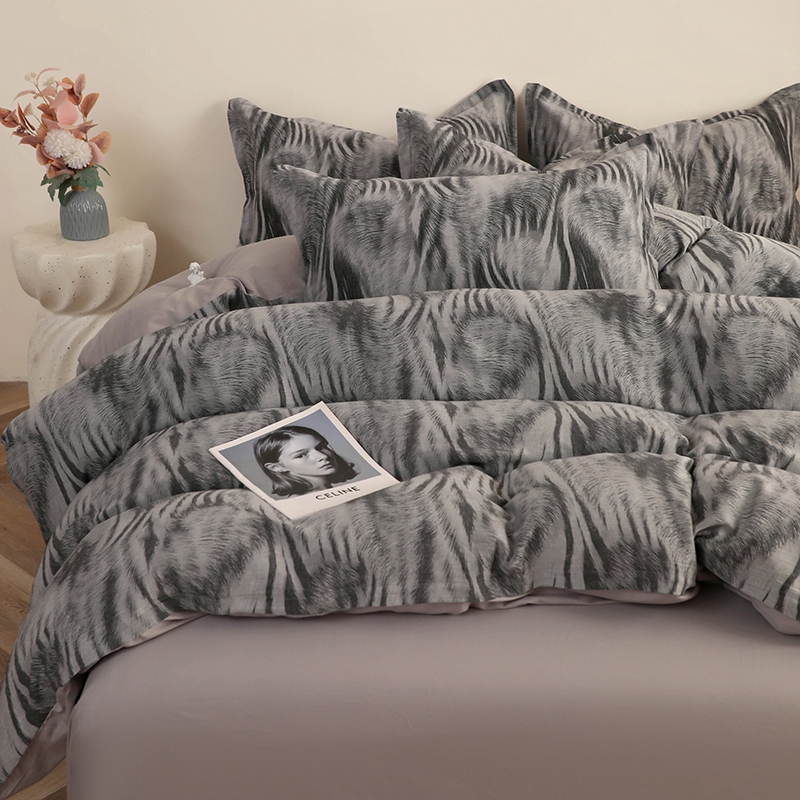 商品名称:昊川家纺 2025新款全棉双层纱水洗色织大提花四件套 随性-灰