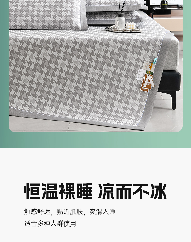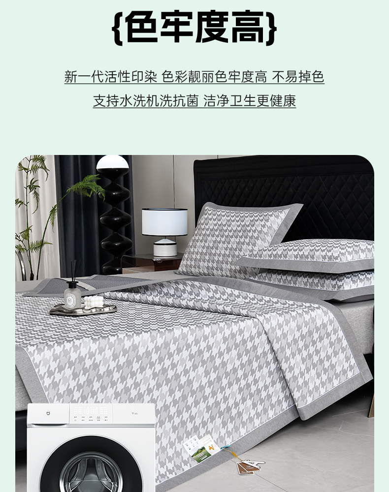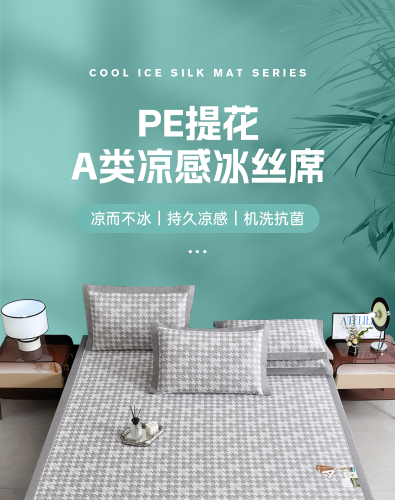 商品名称:小牛席业 2025新款PE千鸟格凉感冰丝席系列 灰色