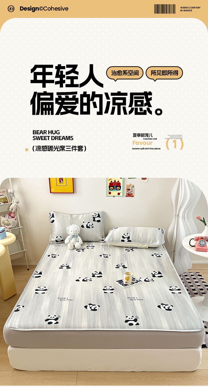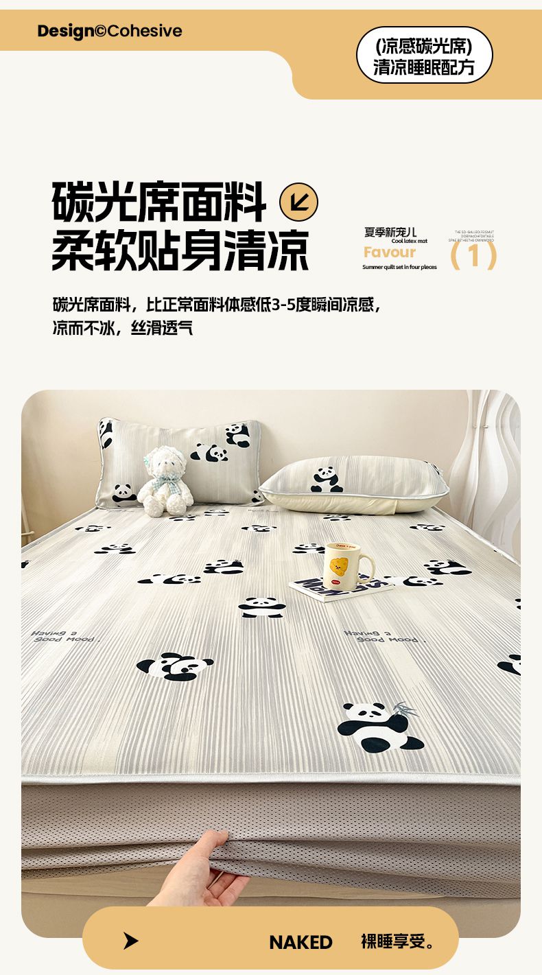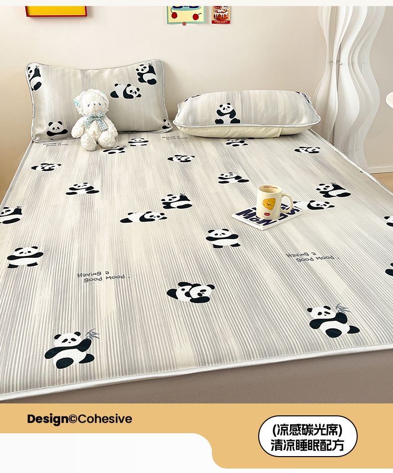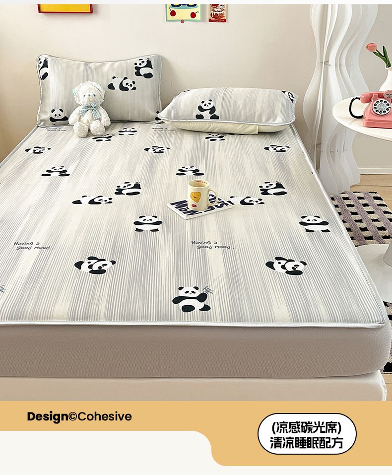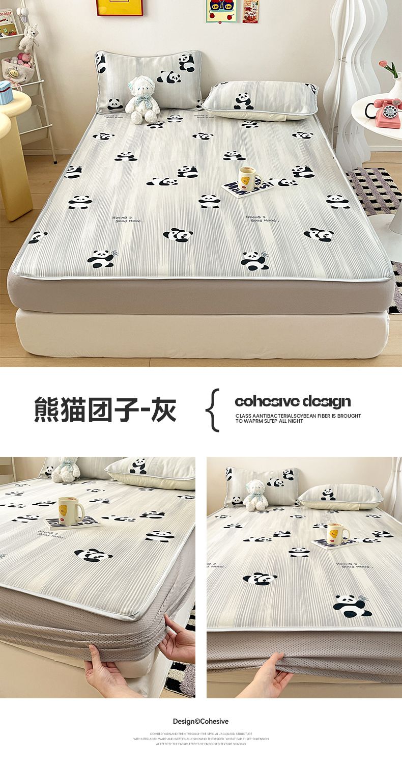 商品名称:摩妮卡 2025新款数码碳光席冰丝席三件套床笠款 熊猫团子-灰