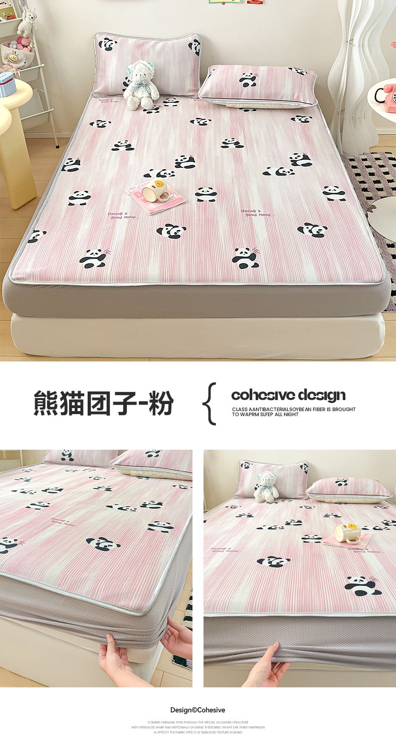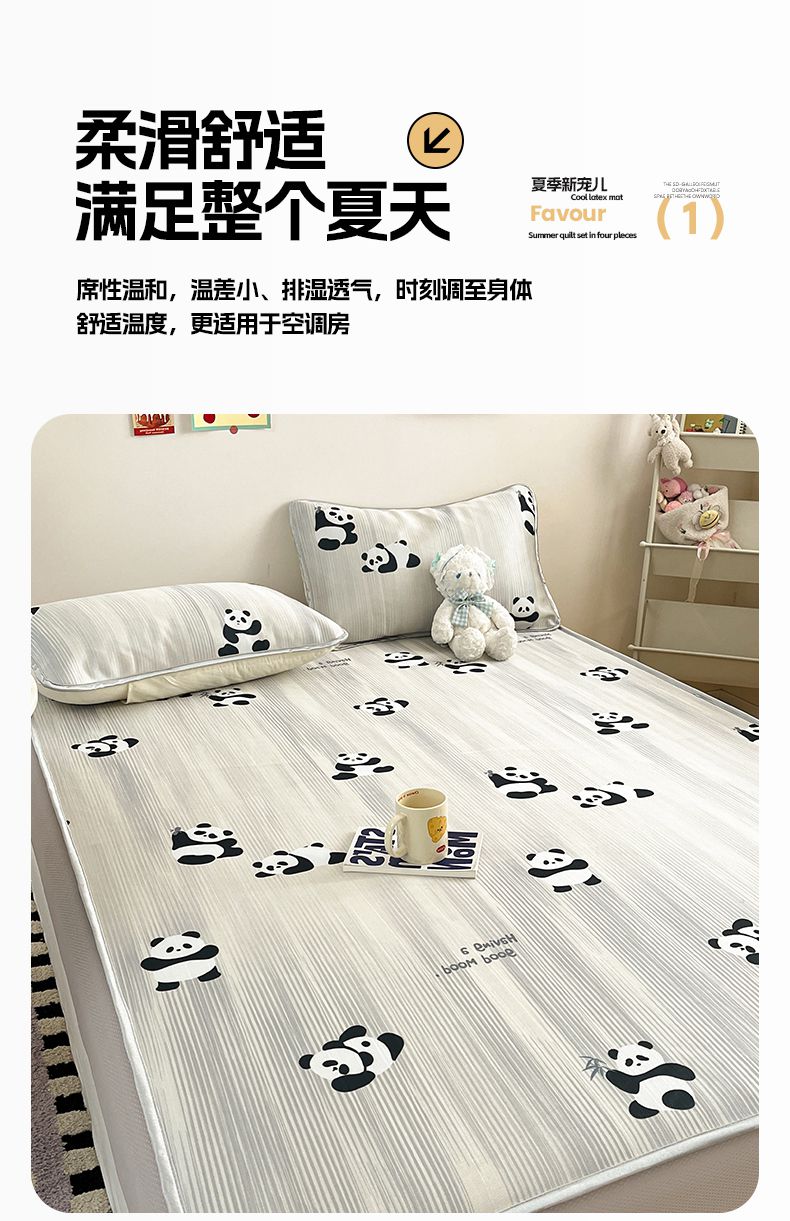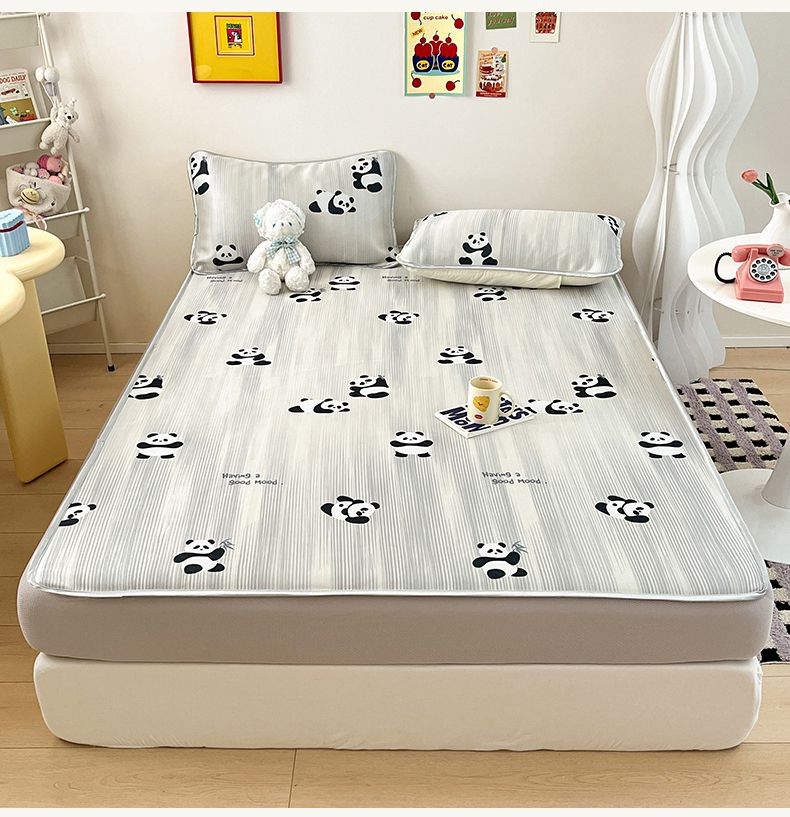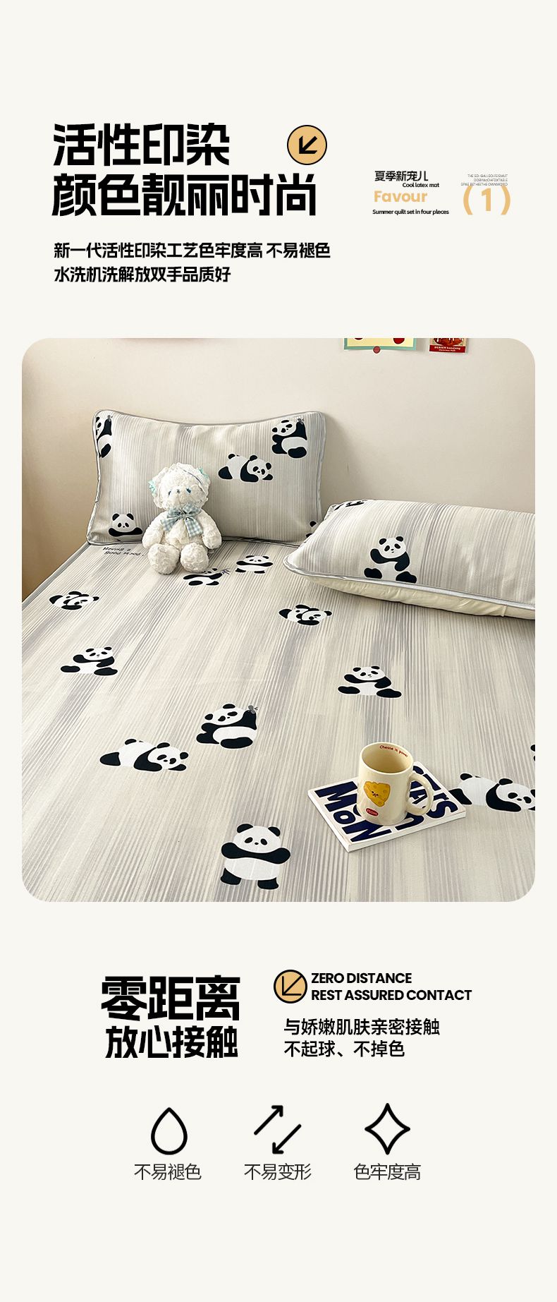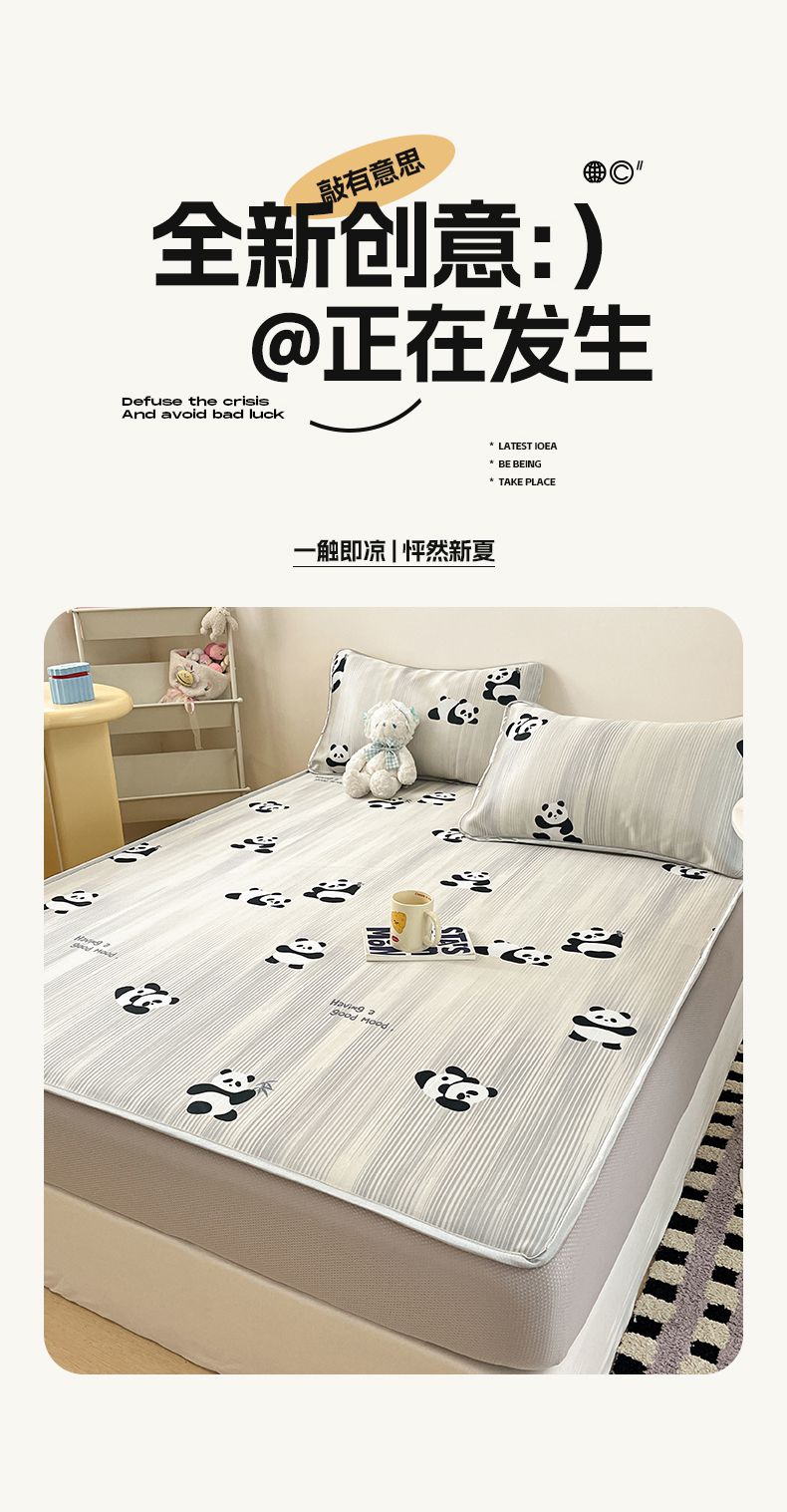 商品名称:摩妮卡 2025新款数码碳光席冰丝席三件套床笠款 熊猫团子-灰