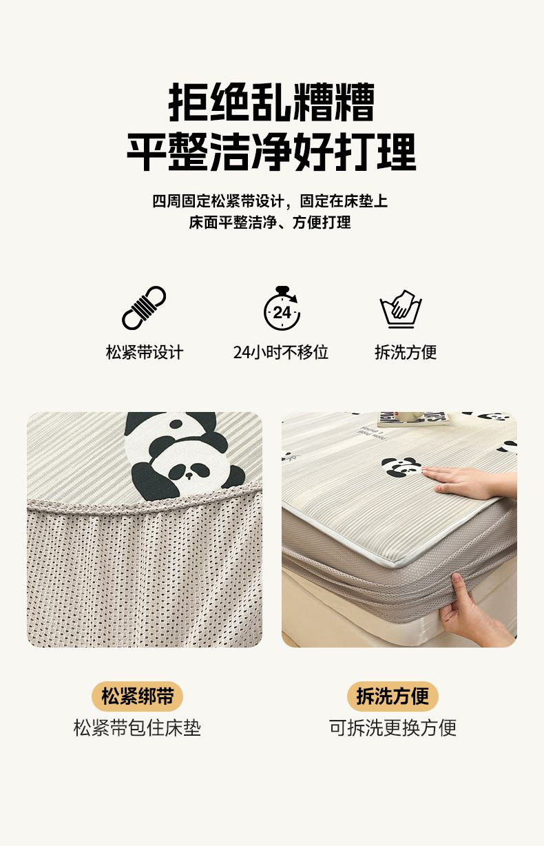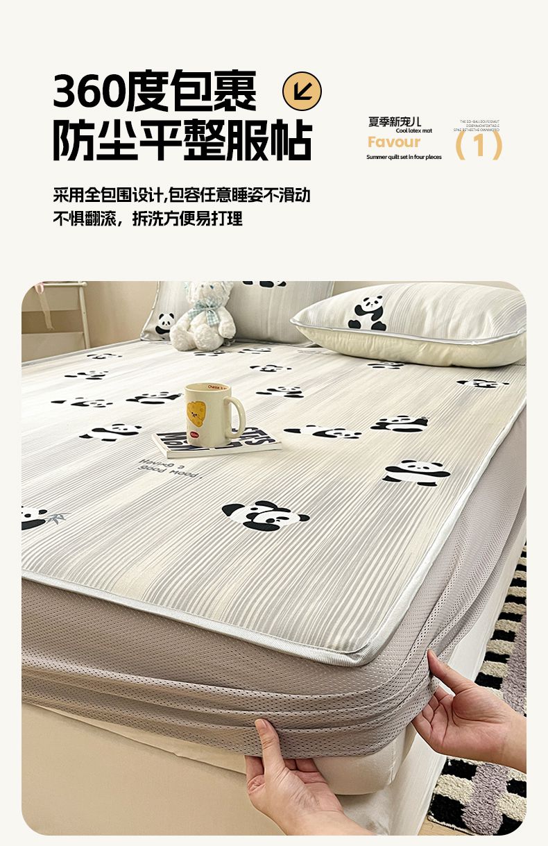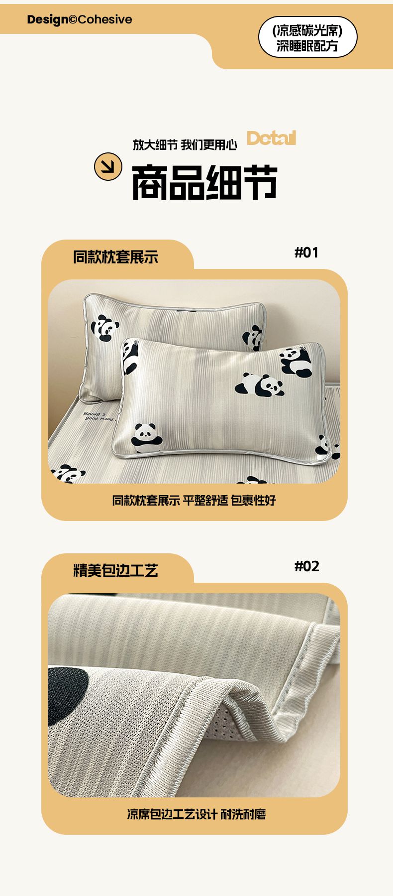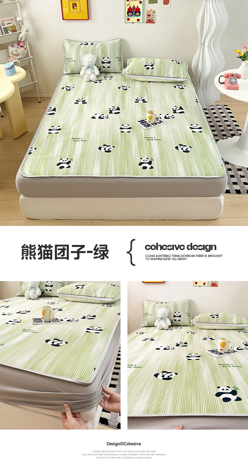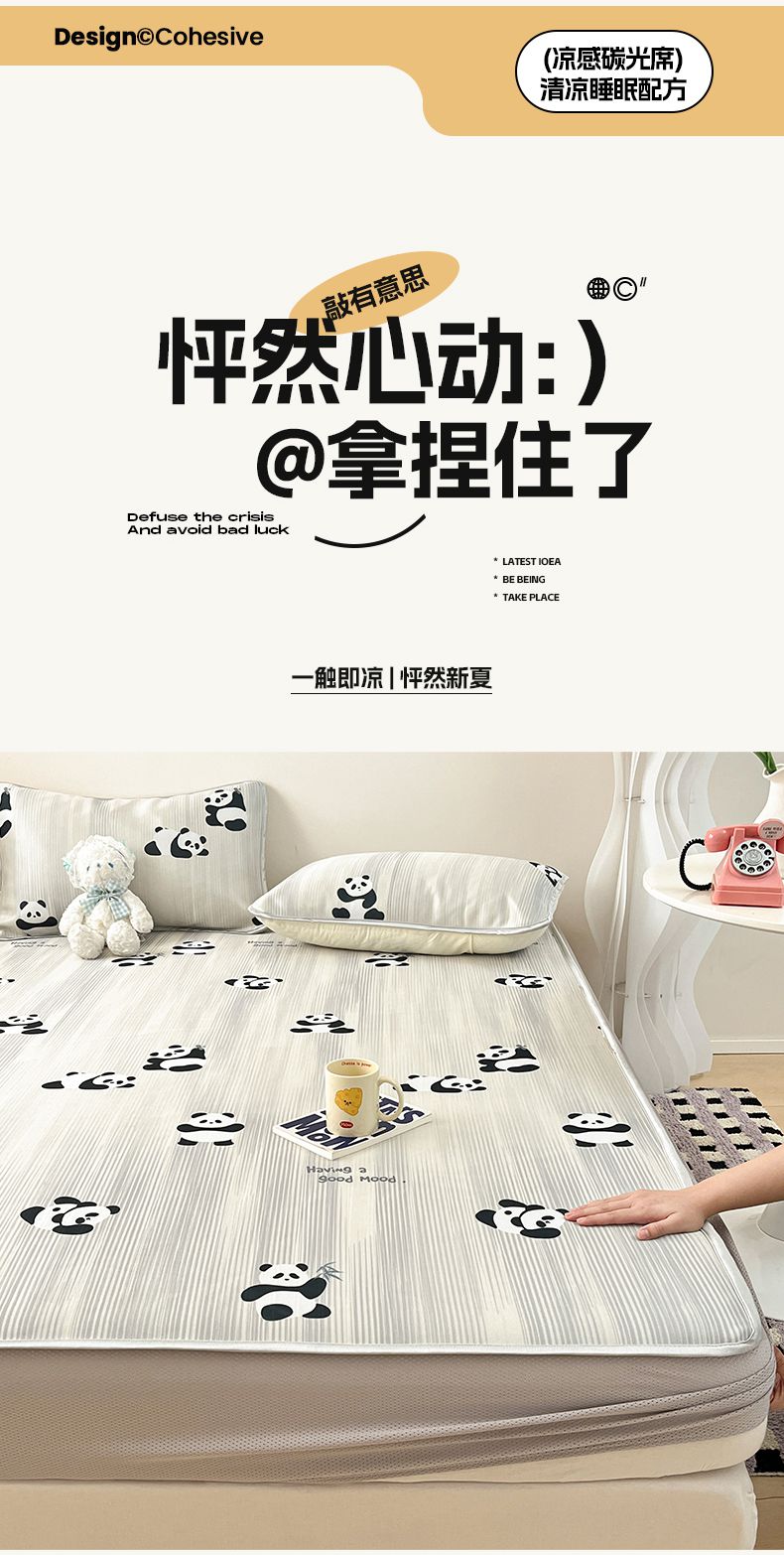 商品名称:摩妮卡 2025新款数码碳光席冰丝席三件套床笠款 熊猫团子-灰
