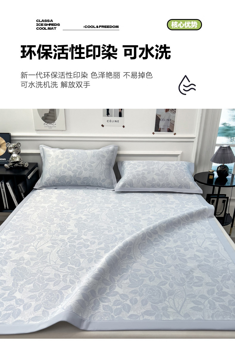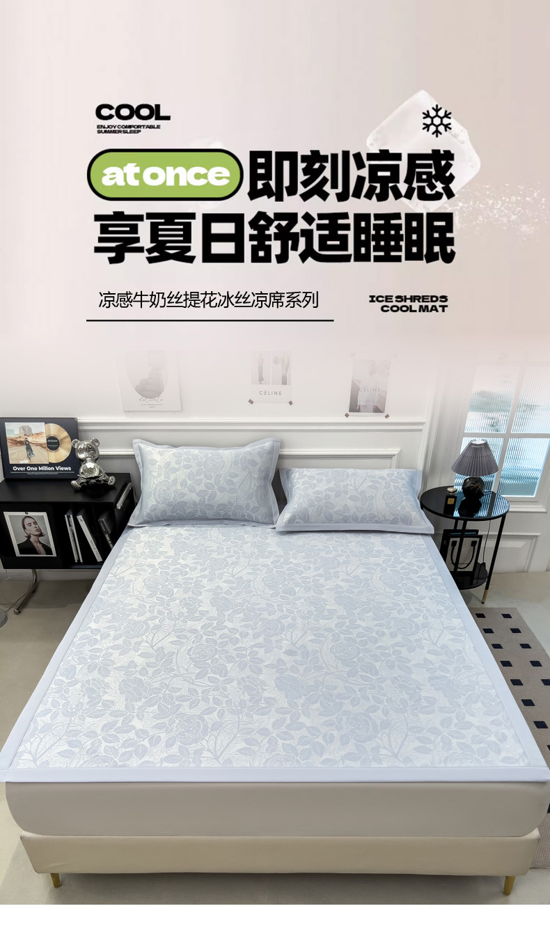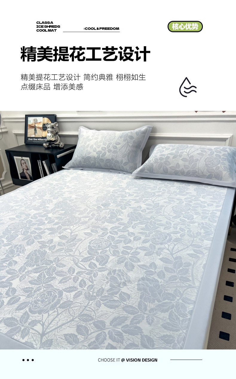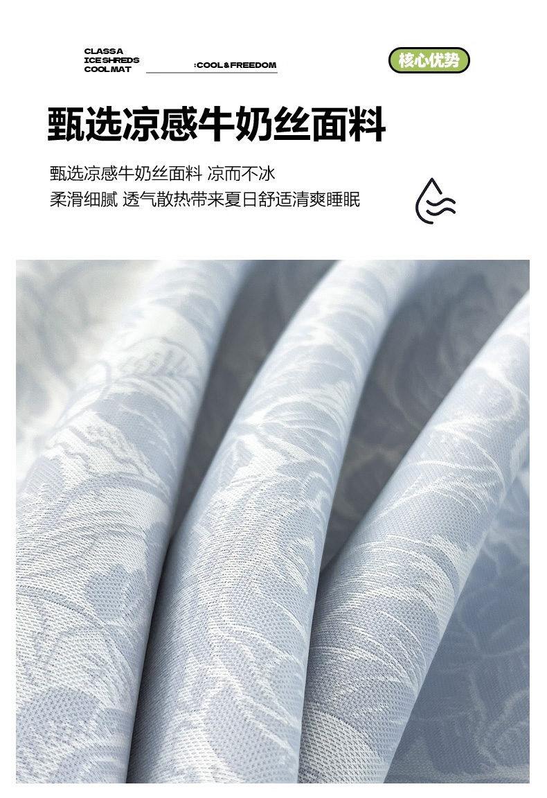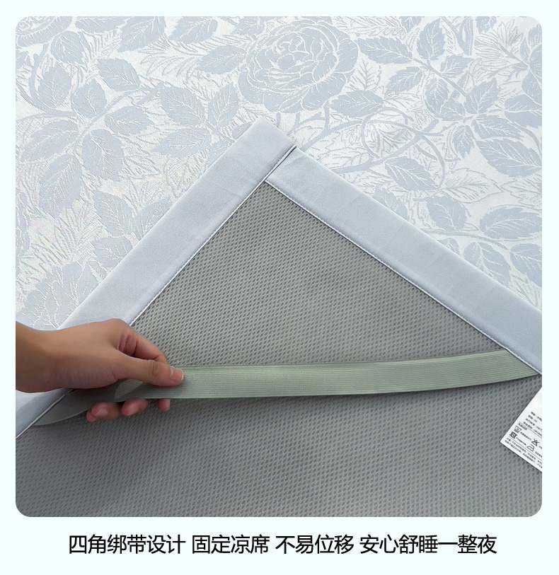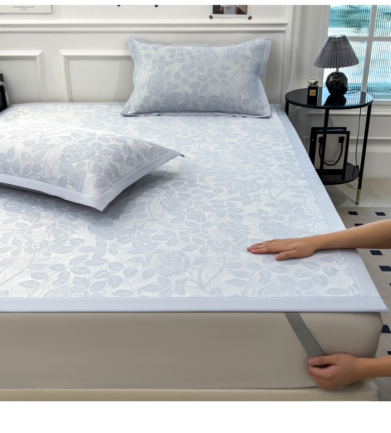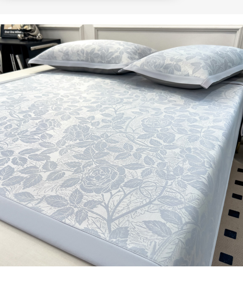 商品名称:2025新款牛奶丝提花凉感凉席系列床席款 情意浓蓝床席款