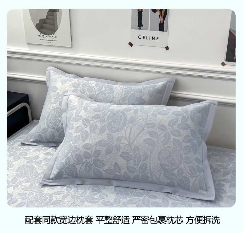 2025新款牛奶丝提花凉感凉席系列床席款 情意浓蓝床席款
