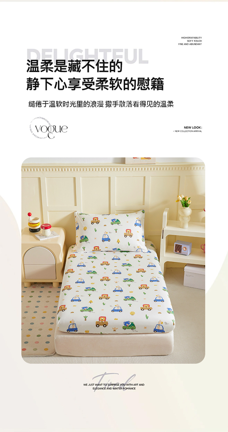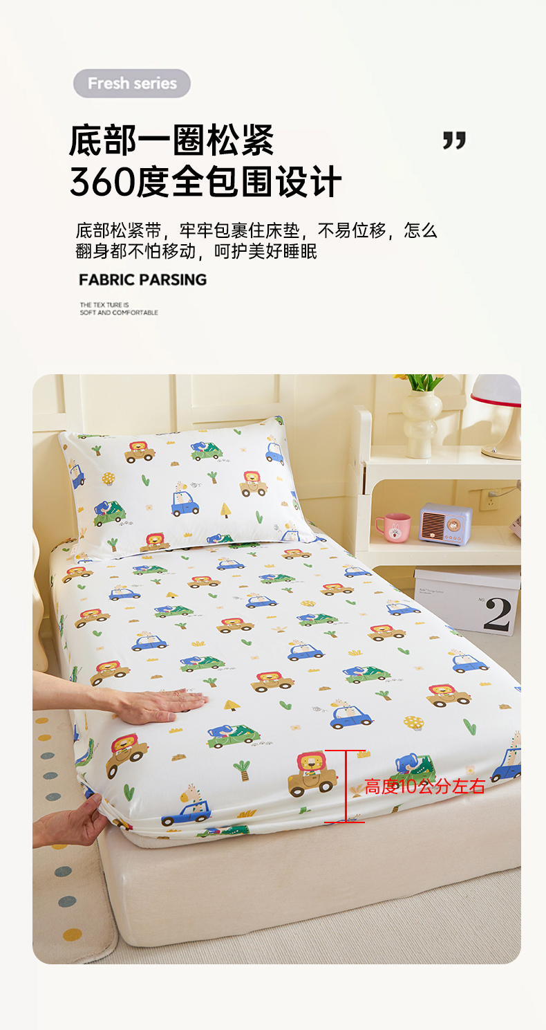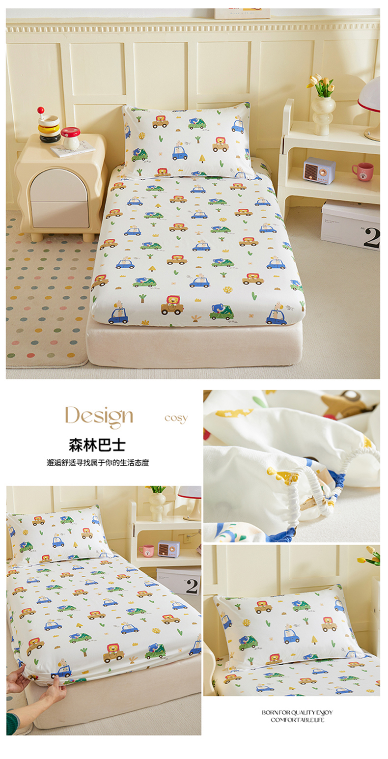 (总)ds生活馆 2025新款儿童纯棉精梳棉系列单床笠,森林巴士,草莓生活,海底世界,花朵小鸭,滑板巴拉,水果恐龙,太空库洛米,玩具玉桂狗,小狗熊猫,星星恐龙白,星星恐龙蓝,星星恐龙绿