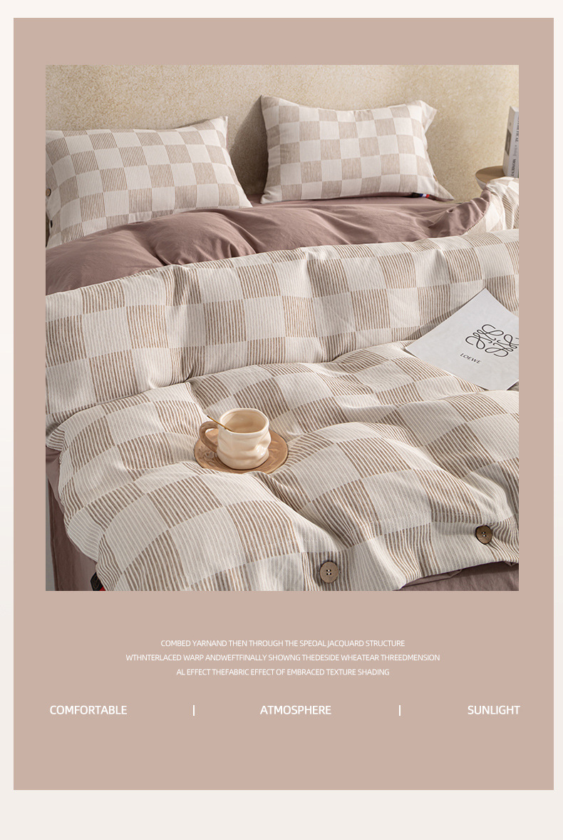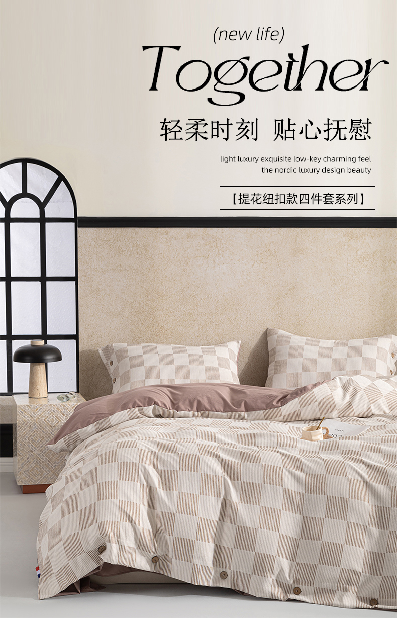 恋之语 2025新款亲肤舒适提花纽扣款四件套 格律时尚-浅绿