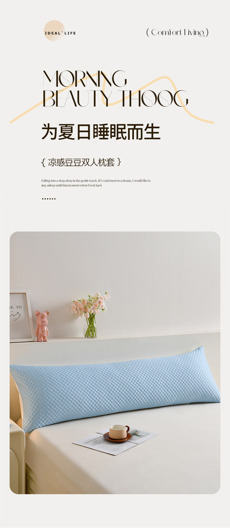 商品名称:艾兜坊 2025新款凉豆豆双人枕套 极简-蓝