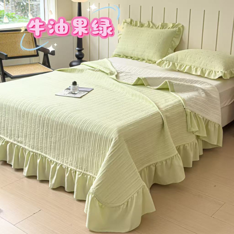 (总)希朵家纺 2025新款麻夫格床盖三件套,豆沙粉,米白色,牛油果绿,清泉绿,时尚灰,天空蓝,优雅紫