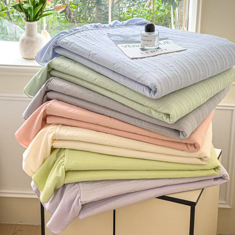 (总)希朵家纺 2025新款小冰柠凉感床盖夏被四件套,豆沙粉,清泉绿,灰色,紫色,奶驼,天空蓝