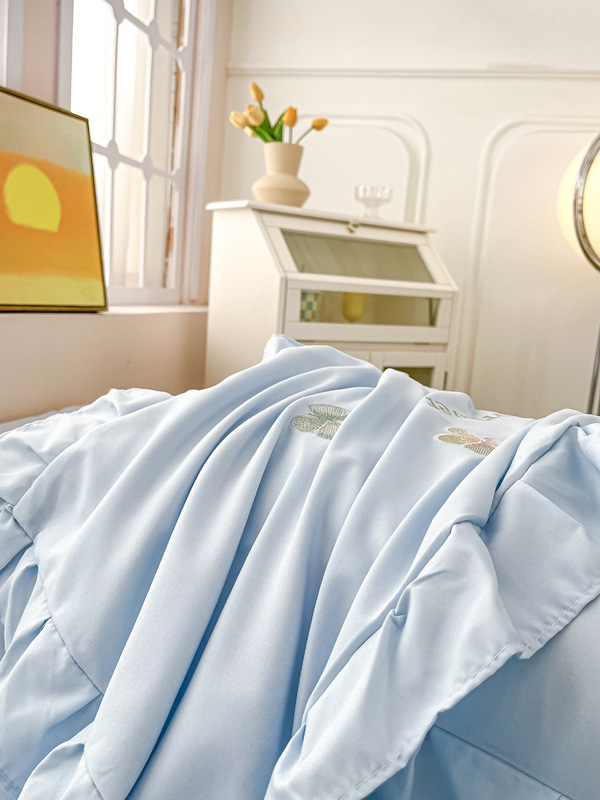 恋之语 2025新款水洗棉刺绣花边四件套-蝶羽 蝶羽-蓝