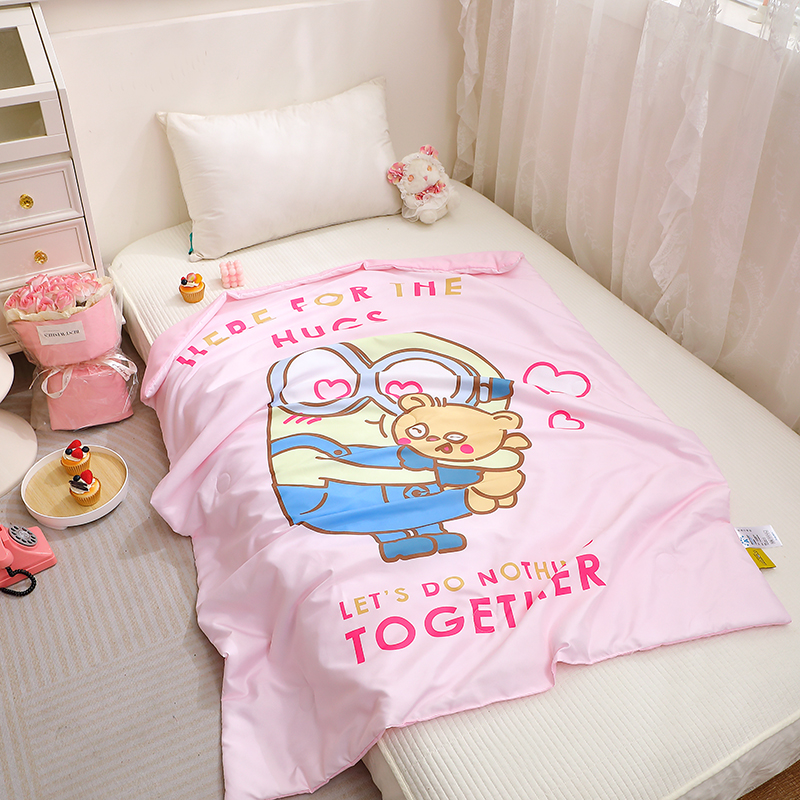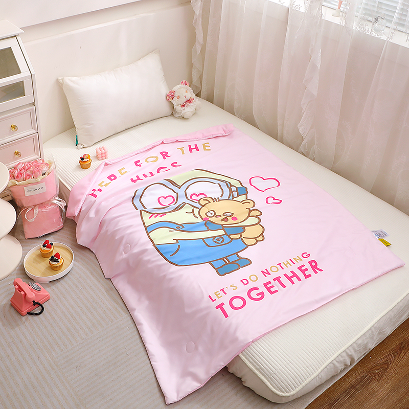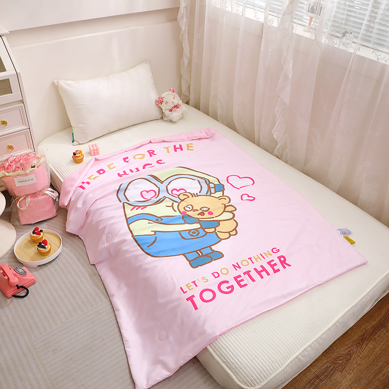 2025新款三丽鸥正版授权库洛米儿童大版夏被夏凉被凉感天丝空调被夏凉被幼儿园午睡凉席夏被三件套 小黄人-BOB粉