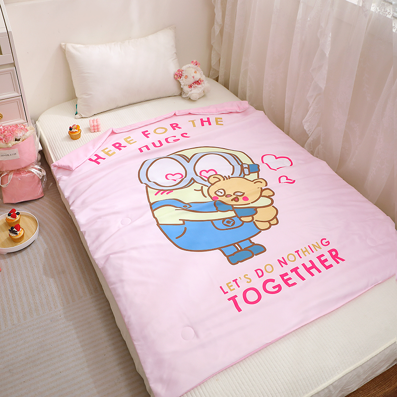 被子 > 夏被 > 2025新款三丽鸥正版授权库洛米儿童大版夏被夏凉被凉感天丝空调被夏凉被幼儿园午睡凉席夏被三件套 小黄人-BOB粉