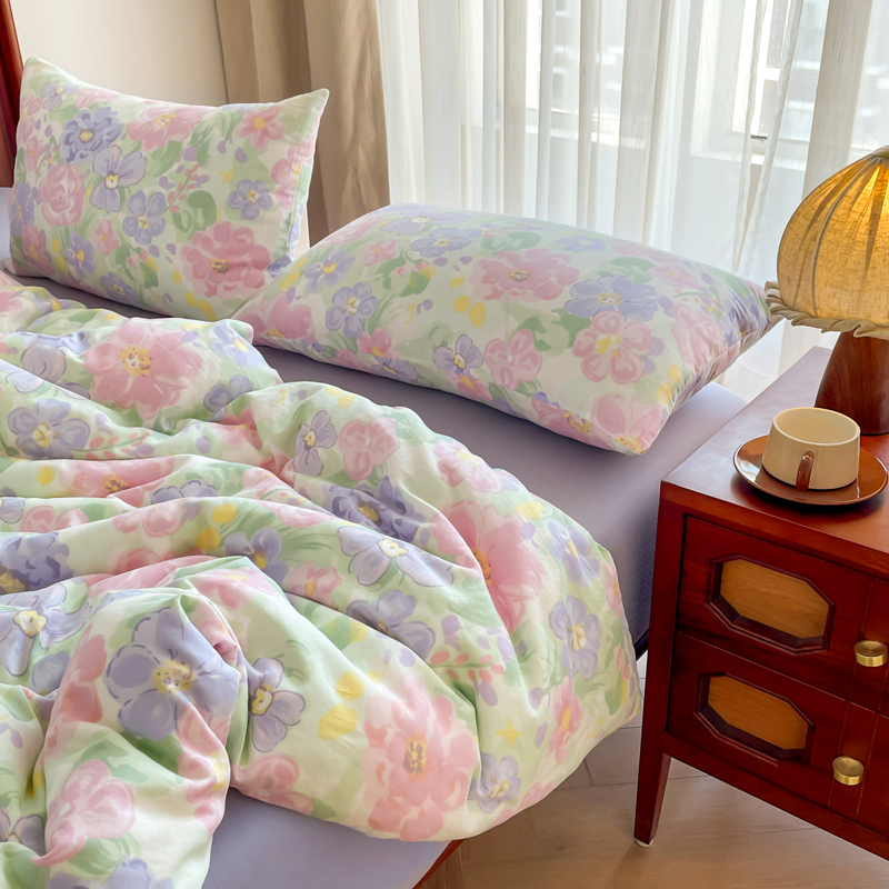 商品名称:一比一家纺 2025新款全棉母婴级抗菌有氧全棉双层纱亲肤全棉小清新印花三件套四件套 春天里