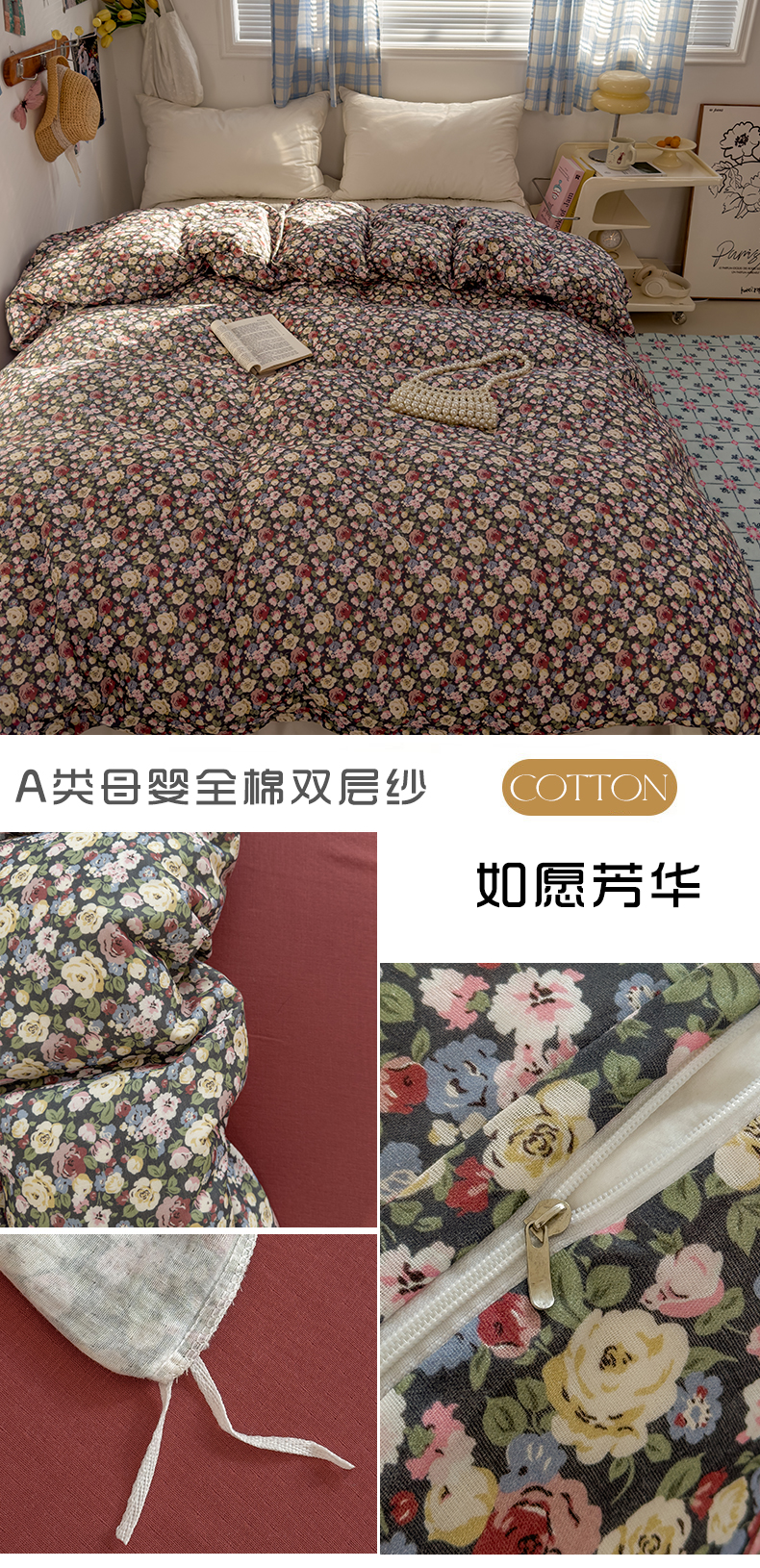 • 91家纺网 家纺一手货源 找家纺 塔塔家居  2025新款全棉纯棉双层纱被套单品单被套被套单件 如愿芳华