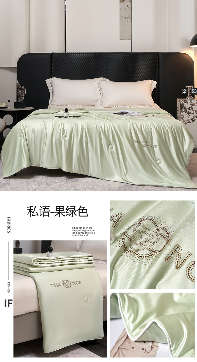 商品名称:鸣升家纺 2025新款新款A类冰蓝丝凉感夏被填充蚕蛹蛋白夏凉被空调被 私语-果绿色