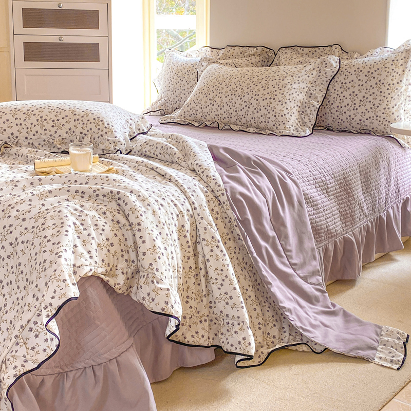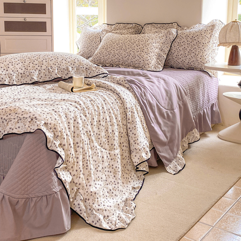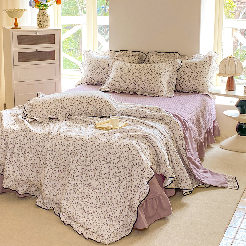 仟网汇 2025新款赫本针织双层纱夏被夏凉被空调被床盖四件套单夏被单床盖单品 小紫花