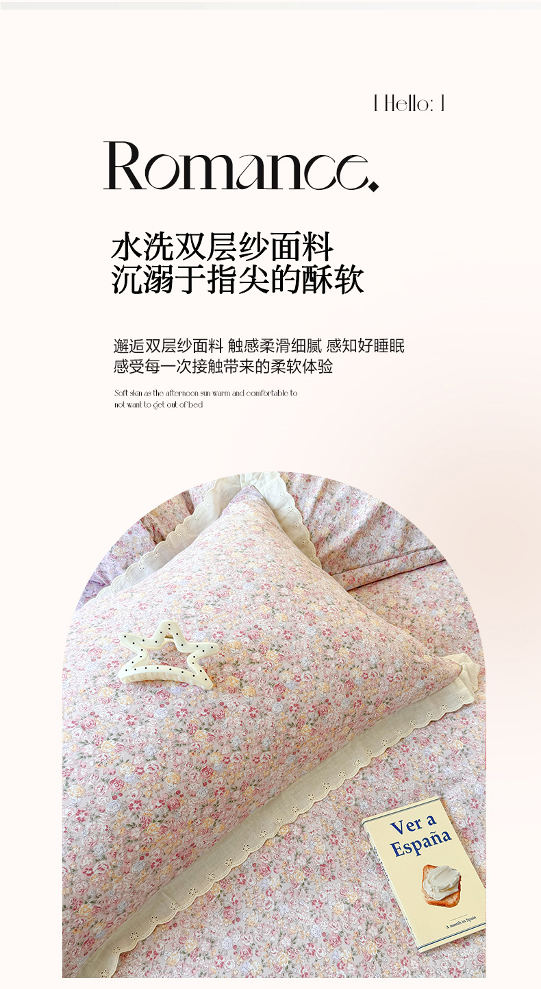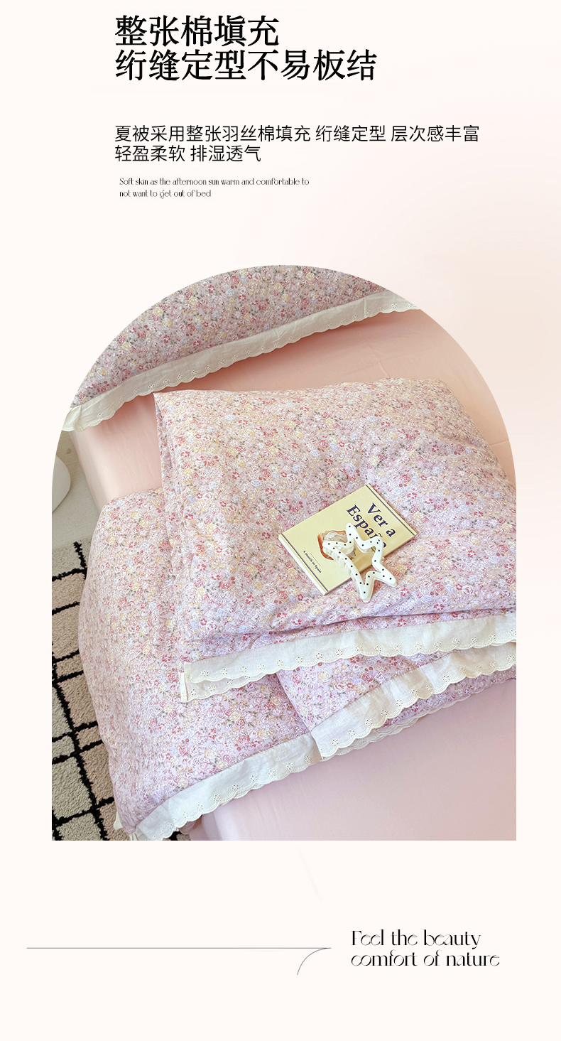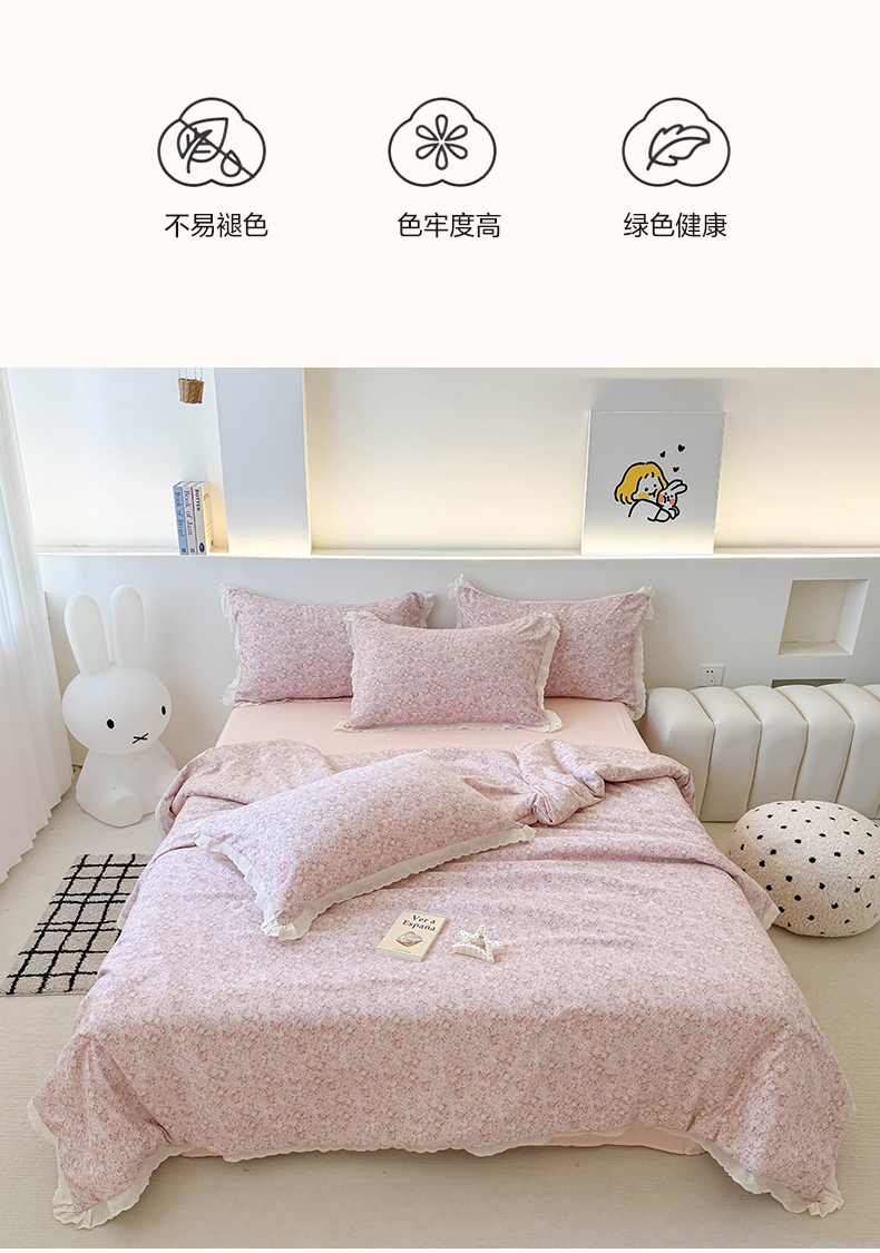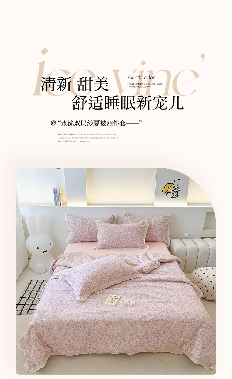 商品名称:吾欢心 2025新款水洗双层纱夏被四件套 南法假日粉