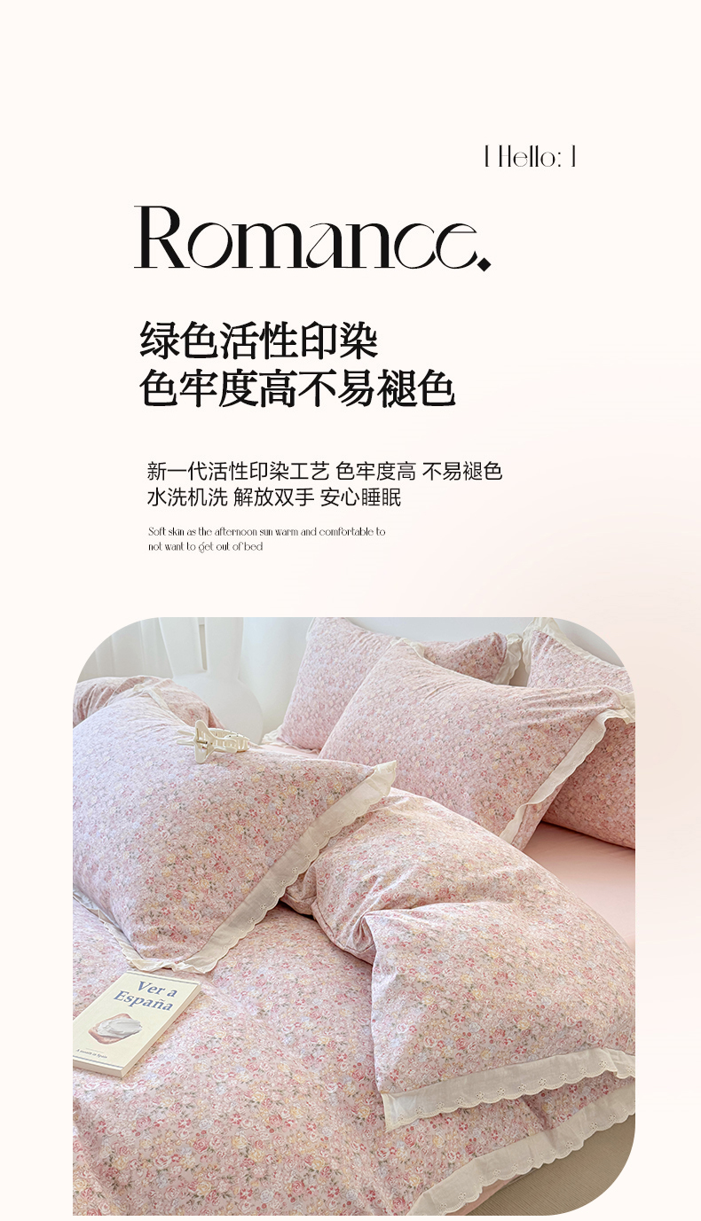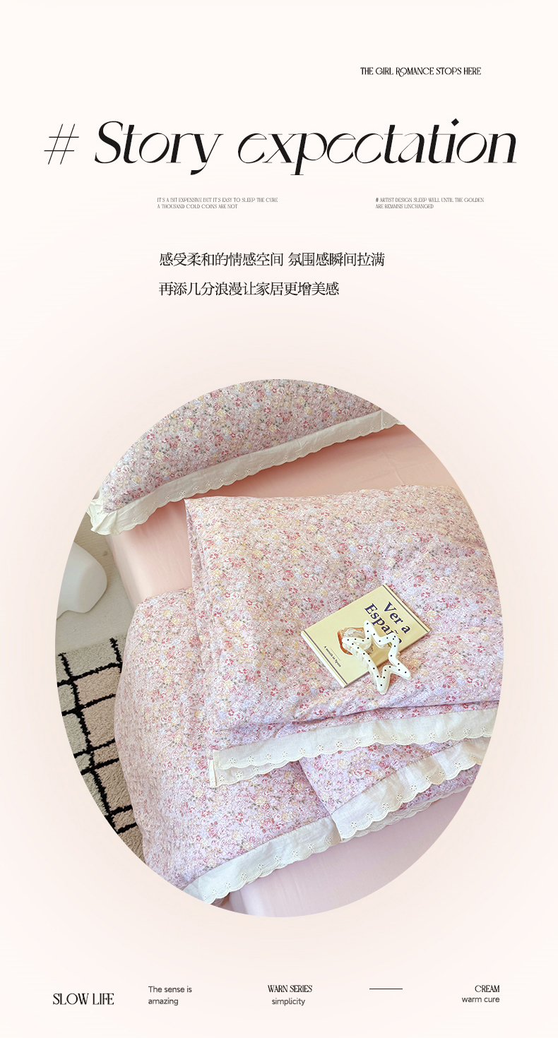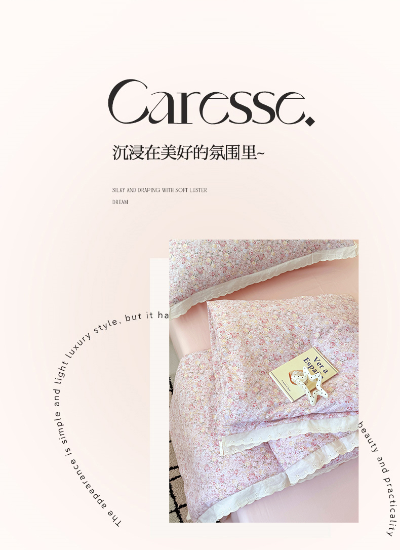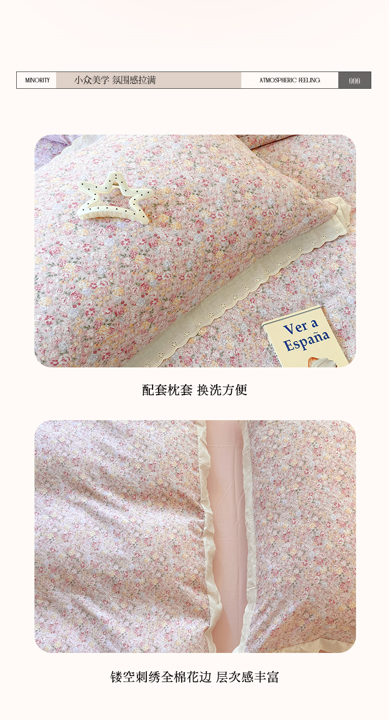 商品名称:吾欢心 2025新款水洗双层纱夏被四件套 南法假日粉